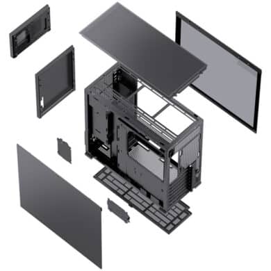 Das Jonsbo D41 unterstützt ein vertikales Airflow-Design und bietet Platz für bis zu acht Lüfter. Alternativ können auch zwei 360-mm-Radiatoren installiert werden, wodurch sich das Gehäuse sowohl für Luft- als auch Wasserkühlung eignet. Die durchdachte Lüfteranordnung leitet frische Luft gezielt zur GPU, während erhitzte Luft effizient abgeführt wird.
