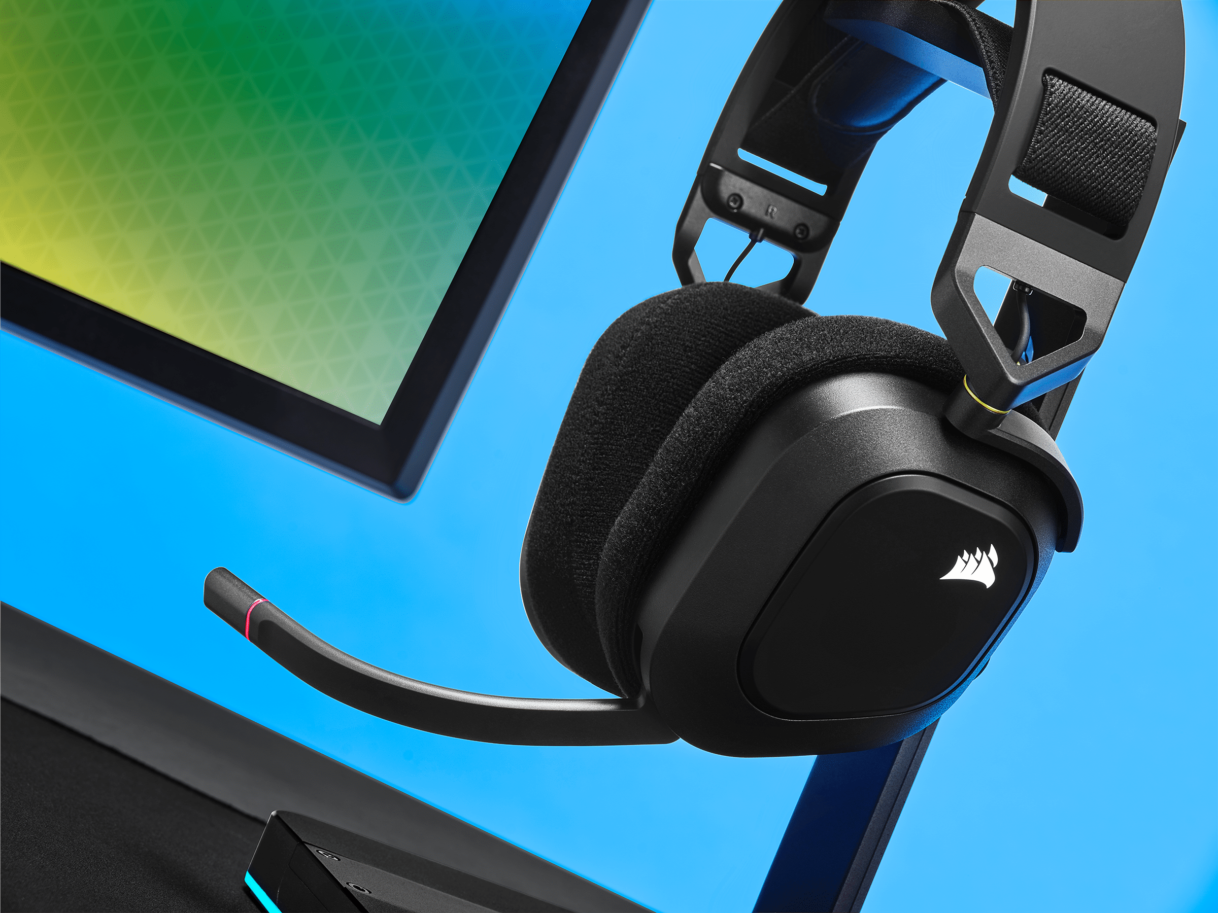 Betrieben werden kann es indes sowohl kabelgebunden als auch kabellos. Zu letzterem Zwecke ist ein Akku in das Headset integriert, der es mit Energie für bis zu 20 Stunden ununterbrochener Einsatzzeit versorgt. Die Reichweite des Funksignals liegt bei rund achtzehn Metern. Hinzu kommt außerdem eine anpassbare RGB-Beleuchtung, die mittels iCUE-Software mit der Beleuchtung anderer Corsair-Produkte synchronisiert werden kann.