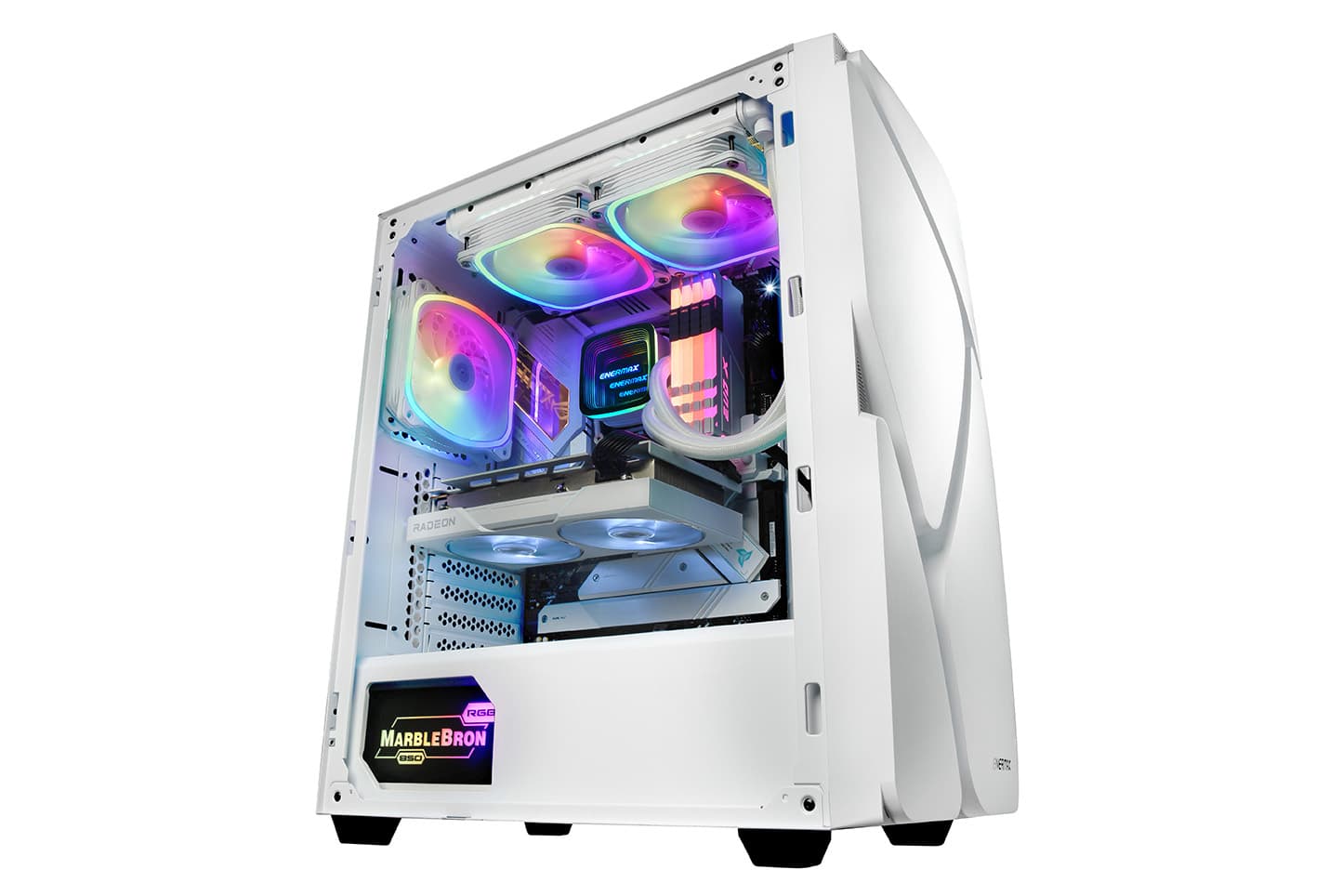 Doch nicht nur technisch, sondern auch optisch weiß die AQUAFUSION ADV von Enermax zu überzeugen. Mit ihrem einzigartigen ARGB-Wasserblock mit Spiegelreflexion und Luminous-Aurabelt-Effekt lassen sich tolle Beleuchtungseffekte erzeugen, die das Innere des PCs zum Strahlen bringen. Insbesondere in Kombination mit weiteren RGB-Elementen taucht der gesamte PC so in ein neues Licht. Ansteuern lässt sich die Beleuchtung der AQUAFUSION ADV sowohl über die Mainboardsoftware als auch über die im Lieferumfang enthaltene Controlbox. Hierüber lässt sich auch die Beleuchtung der zur All-in-One-Kühlung gehörenden RGB-Lüfter steuern. Diese punkten darüber hinaus mit ihrer speziellen Rahmenkonstruktion, die einen zentrierten Luftdruck ermöglicht, um entstandene Wärme schnellstmöglich aus dem Kühler abführen zu können.
