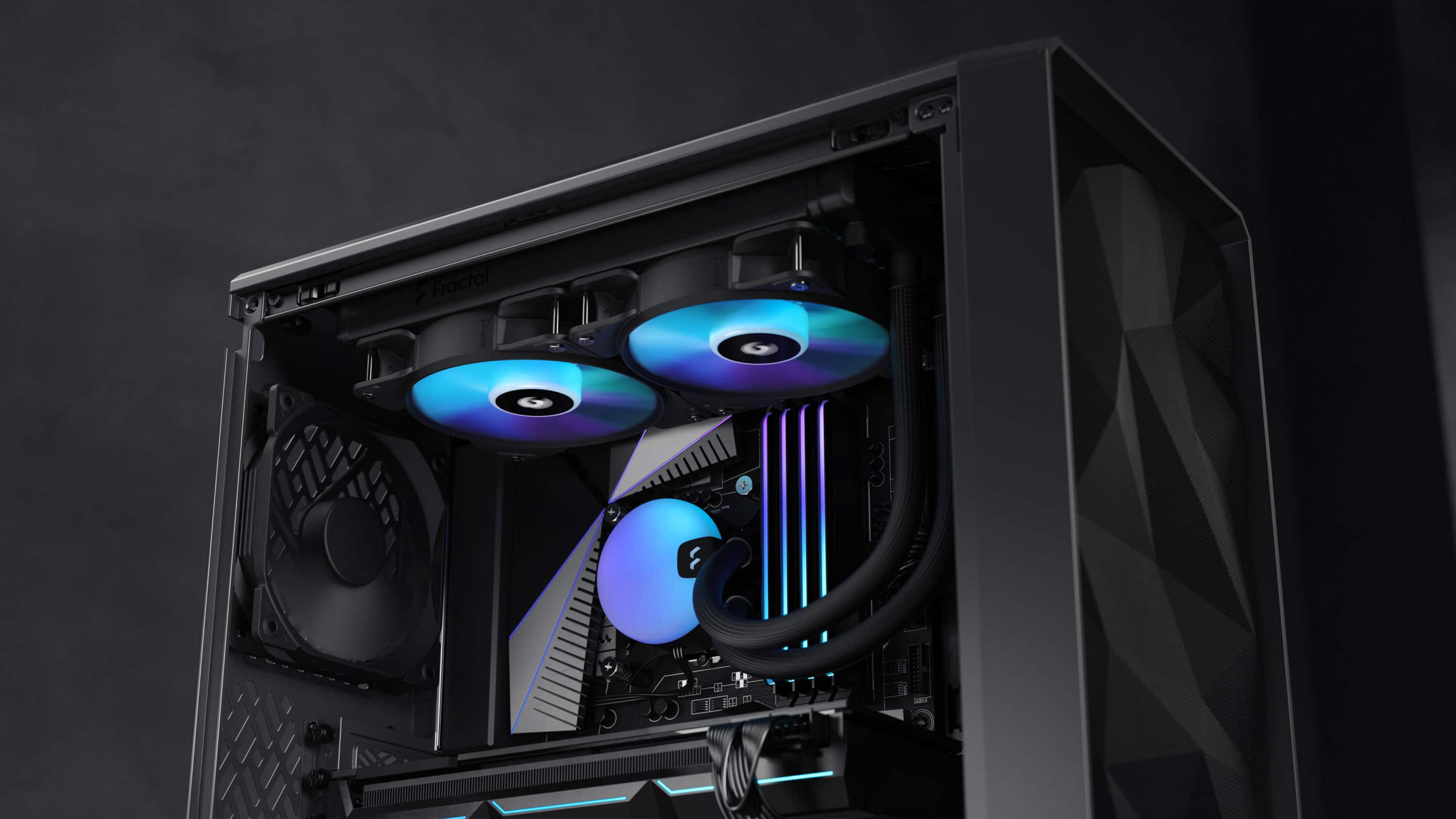 Verwendet werden kann die Wasserkühlung mit den beiden ebenfalls in unserem Gewinnpaket enthaltenen Lüftern Aspect 14 RGB PWM. Auch bei diesem Lüfter hat Fractal Design eigenen Angaben zufolge besonderen Wert auf die Optik gelegt. So gibt der Hersteller an, die Kernfunktionen der Dynamic- und Prisma-Serien übernommen und um eine aufregende Optik ergänzt zu haben.
