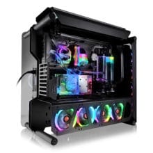 Radiator am Mainboard, am Deckel, an der Vorderseite und an der Rückseite). Ein fünfter Radiator mit bis zu 360 mm Länge kann noch zusätzlich an der Rückseite angebracht werden. Alle Radiatoren dürfen eine Tiefe von bis zu 65 mm haben. Sogar zwei verschiedene und dedizierte Custom-Loos sind möglich. Willst du lieber mit Luft kühlen, dann ist das Enyo Gehäuse ebenfalls unglaublich. Hier kannst du insgesamt ganze 23 Lüfter von 120 mm bis 140 mm installieren. Der CPU-Kühler darf eine Tiefe von bis zu 190 mm haben. Das Kabelmanagement erfolgt hierbei über den hohlen Rahmen in der Mitte.