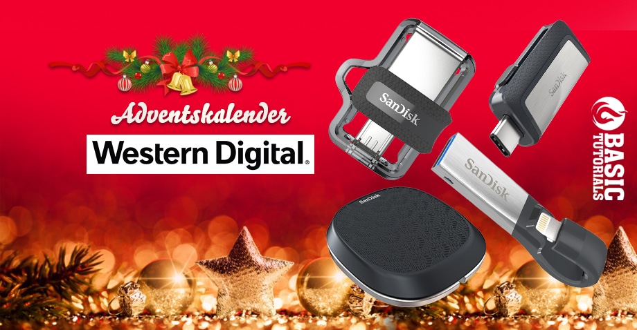 Western Digital verlost unter allen Teilnehmern des Adventskalenders auf Basic Tutorials gleich vier tolle Speicherprodukte der Marke SanDisk. Heute könnt ihr somit gleich an vier Gewinnspielen teilnehmen und mit ganz viel Glück gleich vierfach abräumen. Also worauf wartet ihr noch?