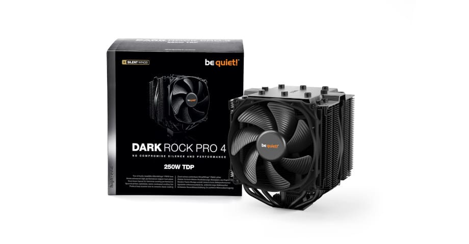 Der rund 70 Euro teure Dark Rock Pro 4 CPU-Kühler gehört seit seinem Release zu den leistungsstärksten Luftkühlern auf dem Markt. Mit seiner maximalen Kühlleistung von 250 Watt TDP lassen sich selbst übertaktete High-End-Prozessoren mühelos kühlen.