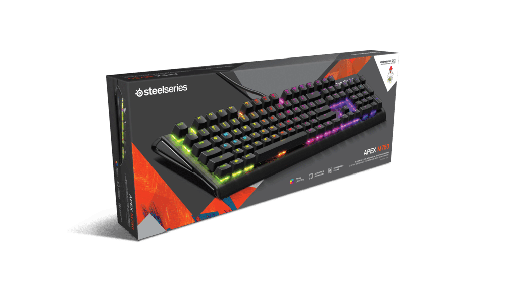 Die absolut hochwertige Gaming-Tastatur Apex M750 wartet nicht nur mit einem Rahmen aus Flugzeug-Aluminium auf, sie bietet darüber hinaus die beinahe schon selbstverständlichen mechanischen Switches, programmierbare RGB-Lichteffekte sowie eine App zur Visualisierung von InGame-Ereignissen.