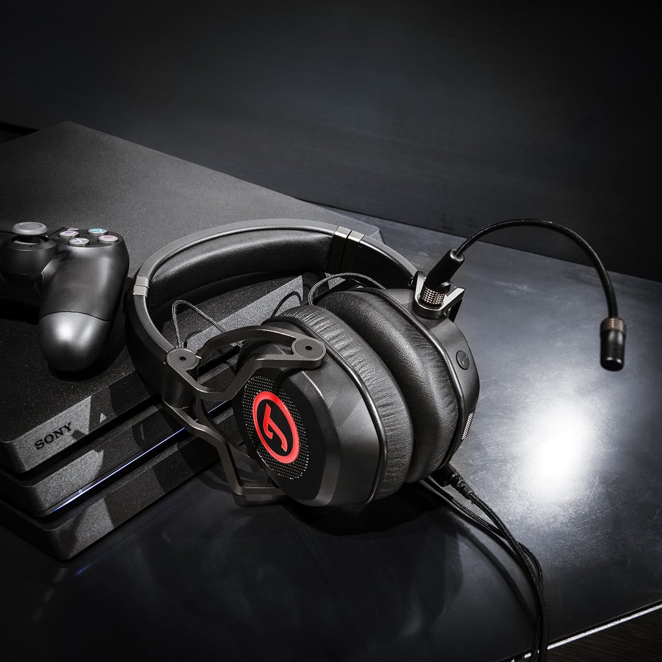 Technisch gesehen klingt all dies etwas nüchterner, jedoch ebenso überzeugend: ein extrem weiter Frequenzbereich, tiefe Bässe, bestes Impulsverhalten durch ultraleichte Treiber, Klangeinhüllung durch Over-Ear-Kapseln, USB-Soundkarten-Konfiguration, rauscharme Wiedergabe usw. Du kannst den Teufel Cage über USB an PC, Notebook und Spielekonsole anschließen. Anschließend profitierst du von einem verlustfreien, extrem rauscharmen Klang. Verfügst du nicht über einen USB-Anschluss, steht dir die Möglichkeit offen, das Headset über einen 3,5-mm-Klinkenanschluss anzuschließen. Zum Teufel Cage gehört auch ein Mikrofon. Dieses kann abgestellt und umgesteckt werden – du entscheidest also selbst, ob du es lieber rechts oder links trägst.