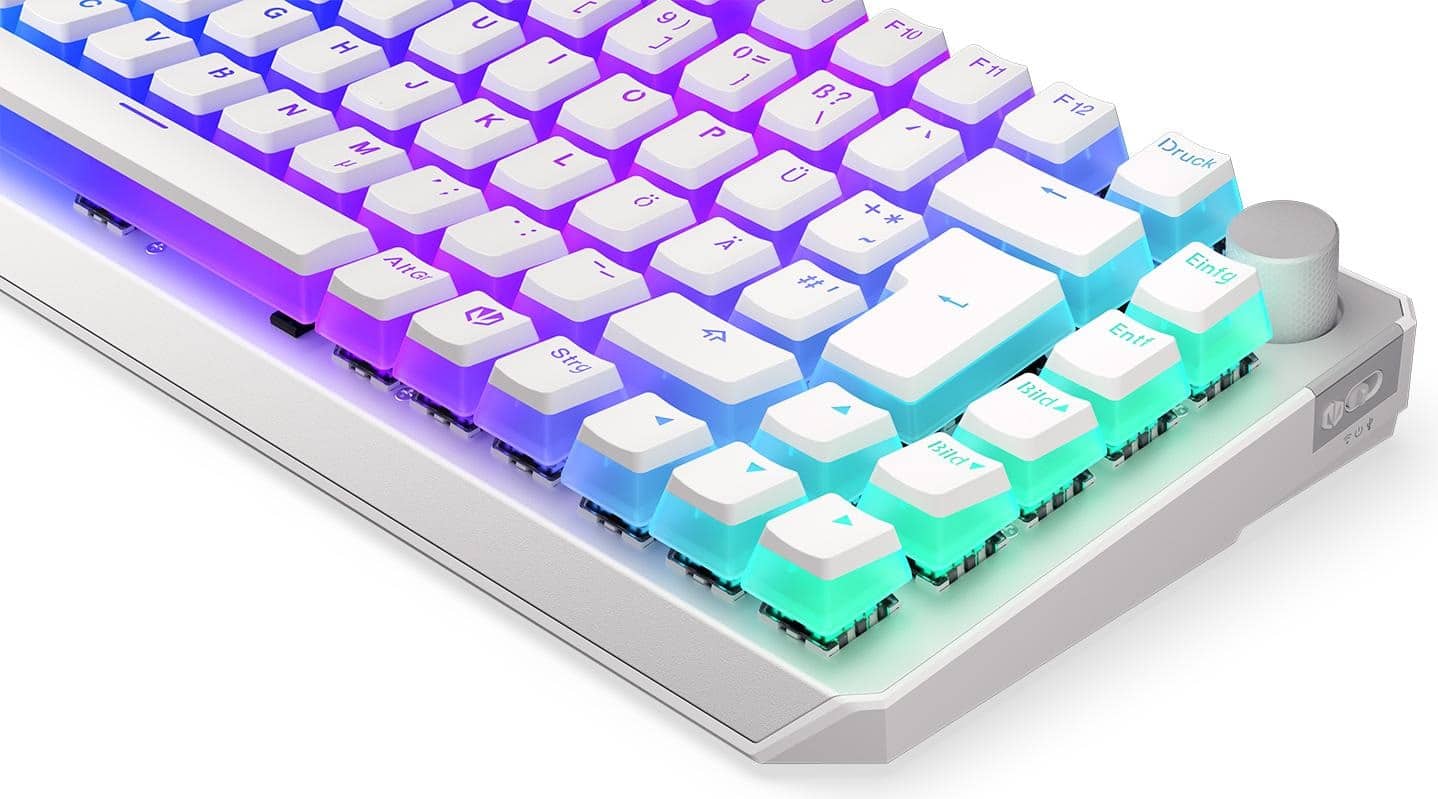 Die RGB-Beleuchtung ist vollständig anpassbar und verleiht der Tastatur ein individuelles Aussehen. Mit der dazugehörigen Software lassen sich zudem verschiedene Profile und Makros einrichten. Die ENDORFY Thock 75% ist nicht nur optisch ansprechend, sondern auch funktional vielseitig.