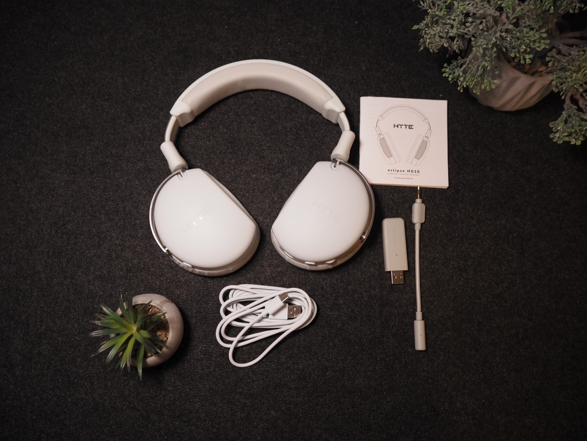 Das HYTE Eclipse HG10 besticht durch sein einzigartiges und edles Design. Die ungewöhnliche Form der Ohrmuscheln, die HYTE als „Halbmond-Design“ bezeichnet, und die matt-weiße Farbgebung der Ohrmuscheln und Bedienelemente, kombiniert mit glänzenden Details am Kopfband und schicken Metallelementen an den Bügeln, unterstreichen die edle Optik des Headsets.