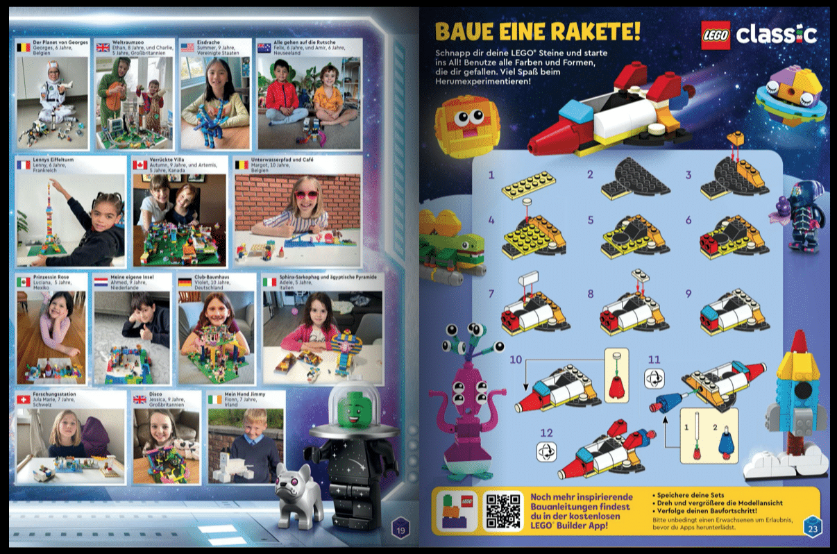 Neben spannenden Inhalten sind es die Interaktionsmöglichkeiten, die LEGO® Magazine so besonders machen. Jede Ausgabe lädt die Leser dazu ein, sich mit den Bauideen auseinanderzusetzen. Das animiert dazu, selbst kreativ zu werden. Eigene Bauwerke lassen sich dann sogar zur Redaktion des Magazins senden. Mit etwas Glück werden sie dann vielleicht in der nächsten Ausgabe abgedruckt.