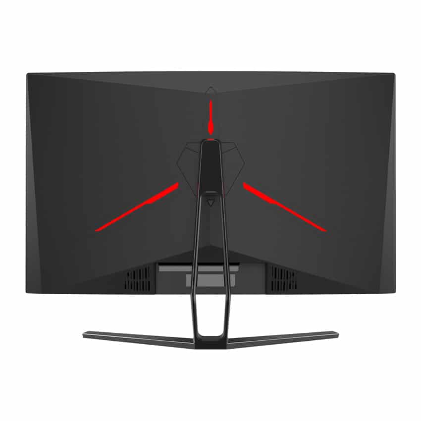 Abgerundet wird die Ausstattung durch zwei HDMI-1.4-, einen HDMI-2.0-, einen DP-1.2-Anschluss sowie einen 3,5-mm-Klinkenstecker. Optisch macht er indes auch einiges her. So finden sich etwa rückseitig rote LEDs. Außerdem ist der Monitor VESA-kompatibel und kann somit ganz einfach an Monitorhalterungen befestigt werden.