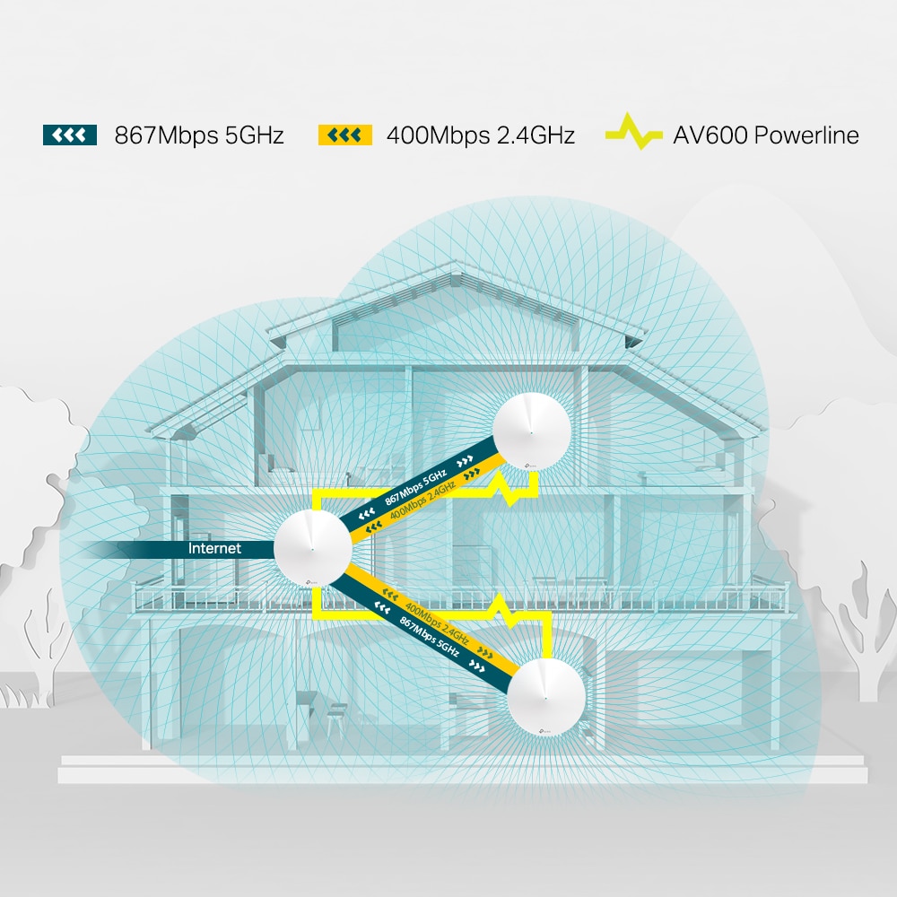 Das System „Deco P7“ verfügt sowohl über diese gewöhnlichen Mesh-Funktionen, mit denen es für eine optimale Ausbreitung des WLAN-Signals sorgt, als auch über Powerline-Funktionalität. Hierbei wird das Signal zusätzlich auch über Stromleitungen verbreitet, was den großen Vorteil mitbringt, dass Wände und andere Hindernisse spielend leicht überwunden werden können.