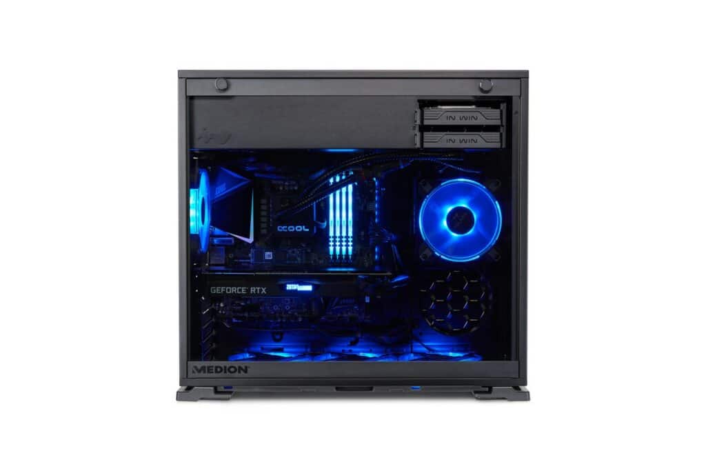 Der MEDION ERAZER Engineer X10 ist ab dem 10. Dezember für 1.399 Euro bei Aldi Süd erhältlich. Dank des Intel Core i7-10700 (8 Kerne, 16 Threads, 2,90 GHz Basistakt, 4,80 GHz Turbotakt) und der Nvidia GeForce RTX 2700 Super in Verbindung mit 16 GB DDR4 Arbeitsspeicher können alle aktuellen Spiele mit hohen Details ohne störende Ruckler gespielt werden. Das hochwertige Gehäuse von InWin mit Glaspanel und moderner Beleuchtung beherbergt außerdem eine 1 TB PCIe SSD und eine 2 TB HDD.