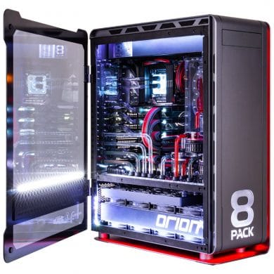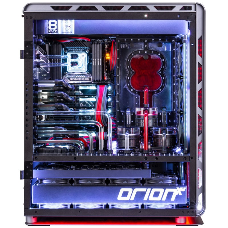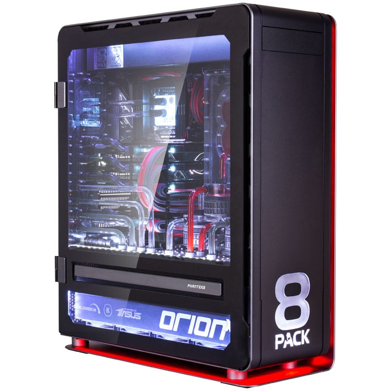 Caseking hat das laut eigener Aussage „leistungsstärkste System der Welt“ in der Neuauflage nochmals verbessert. Beim 8Pack Orion X2 für 39.999 Euro handelt es sich um zwei separate Systeme, die in einem modifizierten Phanteks Enthoo Elite Gehäuse verbaut sind. Die ohnehin schon schnellen High-End-Komponenten des Orion X2 wurden durch den bekannten Overclocker 8Pack an ihre Leistungsgrenzen gebracht. 8Pack, im echten Leben auch bekannt als Ian Parry, ist in der Overclocking-Szene eine der bekanntesten Persönlichkeiten mit mehreren Weltrekorden. Ein System das seinen Namen trägt, verspricht damit höchste Leistung.