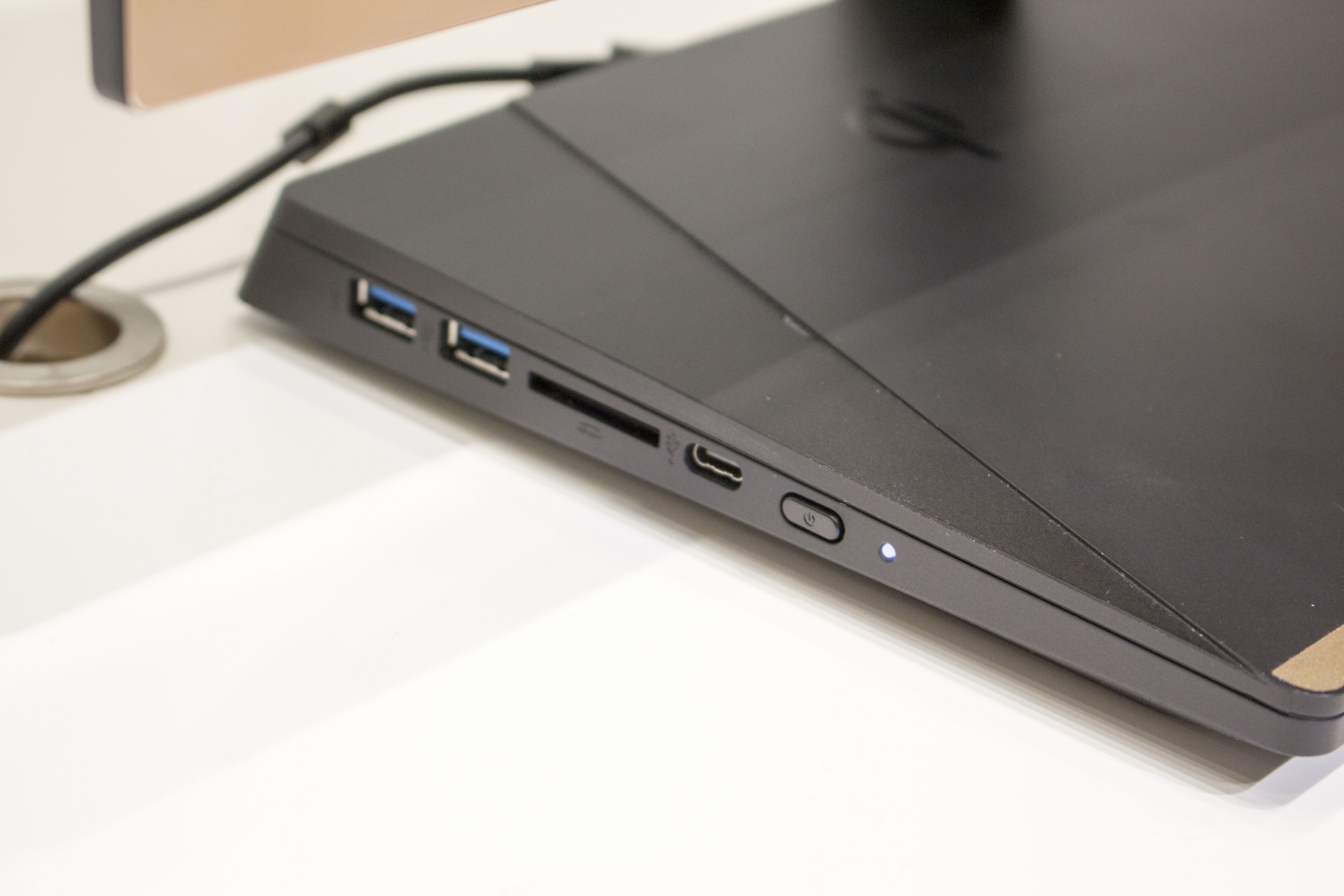 Bei dem Aspire S24 hat Acer speziell auf das Design geachtet. Dieser All-in-One-PC ist definitiv ein Hingucker durch das schwarz-mattgoldene Design. Das Display ist fast komplett randlos und ist lediglich 5,97 mm dick. Durch den 178-Grad-Betrachtungswinkel haben Kollegen aus fast jedem Winkel einen klaren Blick auf die gezeigten Inhalte.