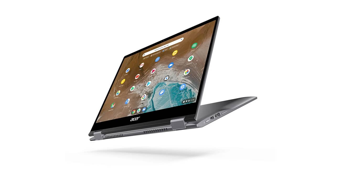 Das Metallgehäuse des Acer Spin 713 ist robust und stilvoll und soll einen Sturz aus bis 122 cm Höhe und bis zu 60 kg Druck problemlos überstehen. Das Touchpad des Convertibles ist ebenfalls aus Corning Gorilla Glas gefertigt. Mit zur Gesamtaustattung gehören zwei USB 3.1 Typ C-Ports sowie ein weiterer USB 3.0 Typ A-Port. Das Chromebook Spin 713 ist auch mit Chrome Enterprise Upgrade erhältlich.
