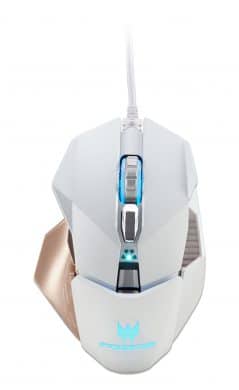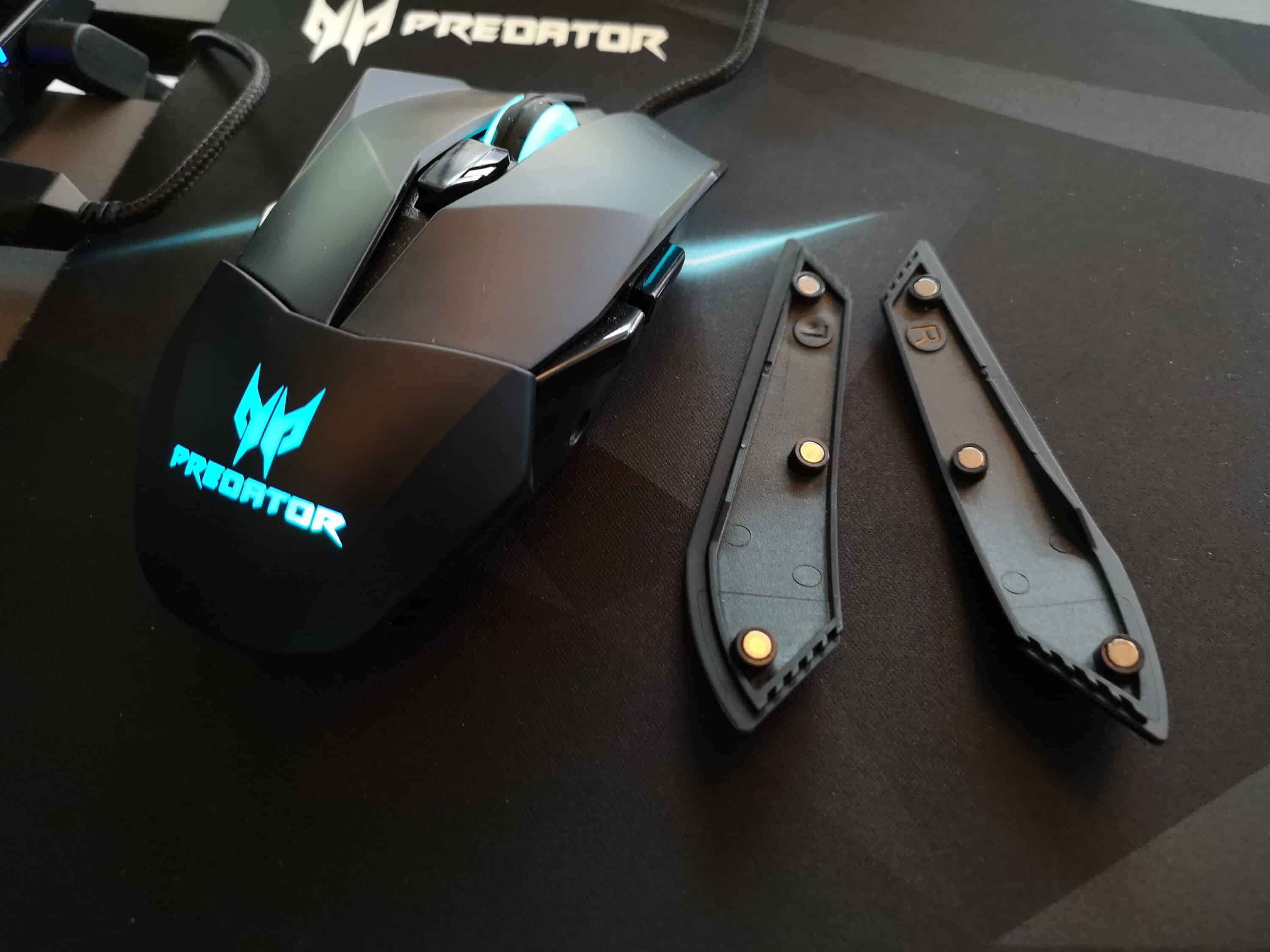 Die Gaming-Maus „Cestus 510“ mutet auf den ersten Blick reichlich seltsam an. Als Nachfolger der ersten Predator-Maus, der Cestus 500, übernimmt die neue Maus einige Spezifikationen dieses Vorgängers. So ist auch sie mit RGB-LEDs ausgestattet. Das subjektiv seltsame Aussehen wird jedoch nicht durch die durchaus übliche Beleuchtung, sondern durch die Flügel, mit denen beide Maustasten ausgestattet wurden, hervorgerufen. Auch die überdimensionalen Daumenablagen tragen zu diesem ersten Eindruck bei. Acer sorgt mit diesem Entwurf seiner Maus jedoch auch dafür, dass diese von möglichst vielen unterschiedlichen Menschen genutzt werden kann. Durch die extrem breiten Maustasten und die extrem großen Daumenablagen kann die Gaming-Maus auch bei ebenso überdimensionalen Händen problemlos verwendet werden. Darüber hinaus können die Seitenteile ebenso wie das Topcover einfach abgenommen werden. Hier soll später durch unterschiedliche Cover auch für Individualität gesorgt werden.