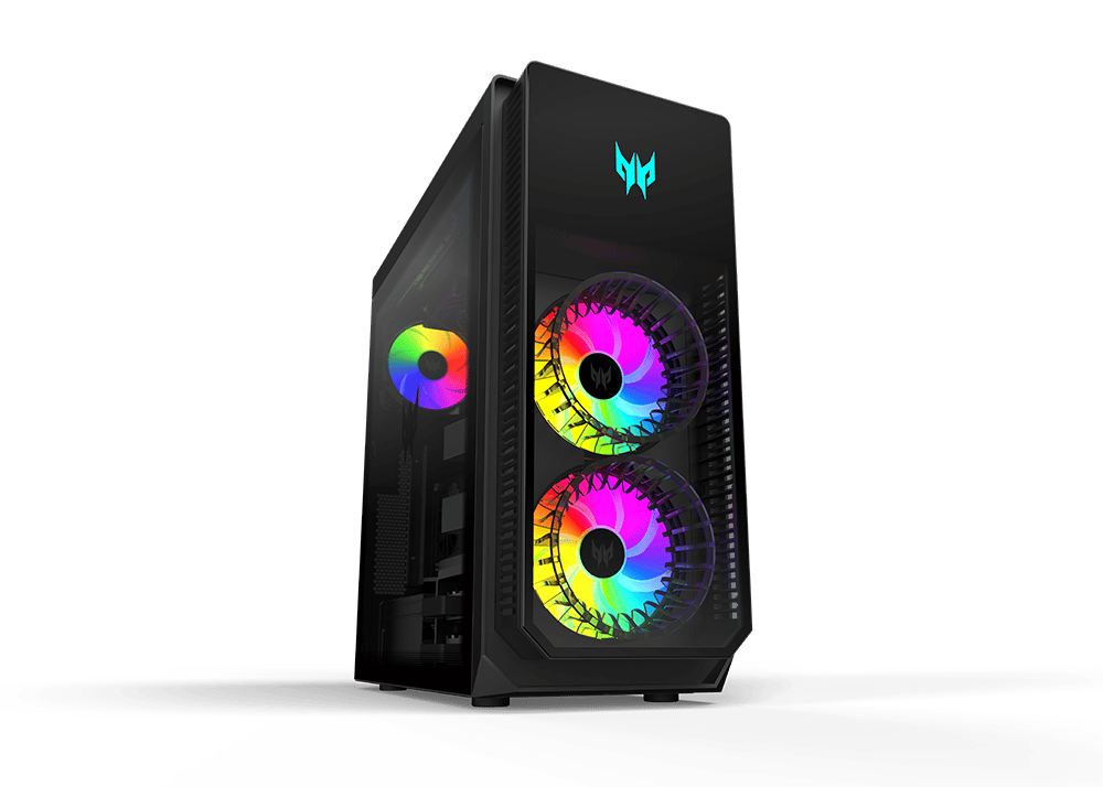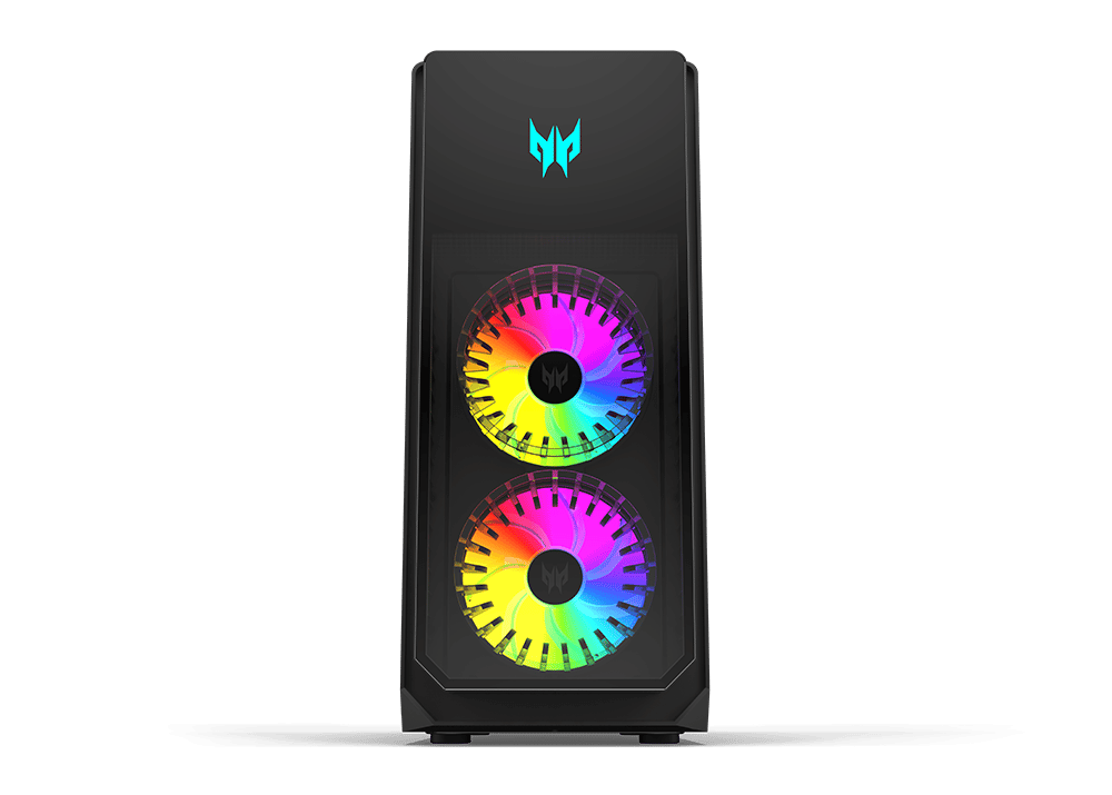 Die zwei 140 mm (5,5 Zoll) Predator FrostBlade 2.0-Lüfter an der Vorderseite und ein dritter 120 mm (4,7 Zoll) Predator FrostBlade 2.0-Lüfter an der Rückseite sorgen für eine hervorragende Kühlung. Für eine stimmige Optik im Acer Predator Orion 7000 sorgen zudem acht anpassbare RGB-LEDs, die mit der PredatorSense-Software angepasst werden können.