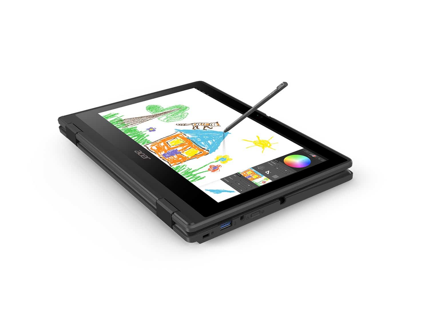 Das TravelMate B3 und das TravelMate Spin B3 von Acer besitzen die gleiche Größe von 29,5 cm (11,6 Zoll). In beiden Modellen kommen die neuesten Intel-Prozessoren zum Einsatz. Ihre besonders hohe Widerstandsfähigkeit wird ihnen durch den US-Militärstandard MIL-STD 810G1 bescheinigt. Die lieben Kleinen sollten sich somit schon sehr gut an den Notebooks austoben können. Acer gibt eine Akku-Laufzeit von bis zu 12 Stunden an.