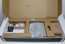 AENO verpackt den SC1 in einem recht kompakten Karton aus weißer Pappe. Allerdings bringt der Hersteller auch etwas Farbe ins Spiel und druckt auf den Karton zwei Produktbilder und einen Rahmen aus schwarzer und goldgelber Farbe. Des Weiteren lassen sich eine Kurzbeschreibung in verschiedenen Sprachen sowie eine Auflistung der wichtigsten Features an den Seiten des Kartons erkennen.