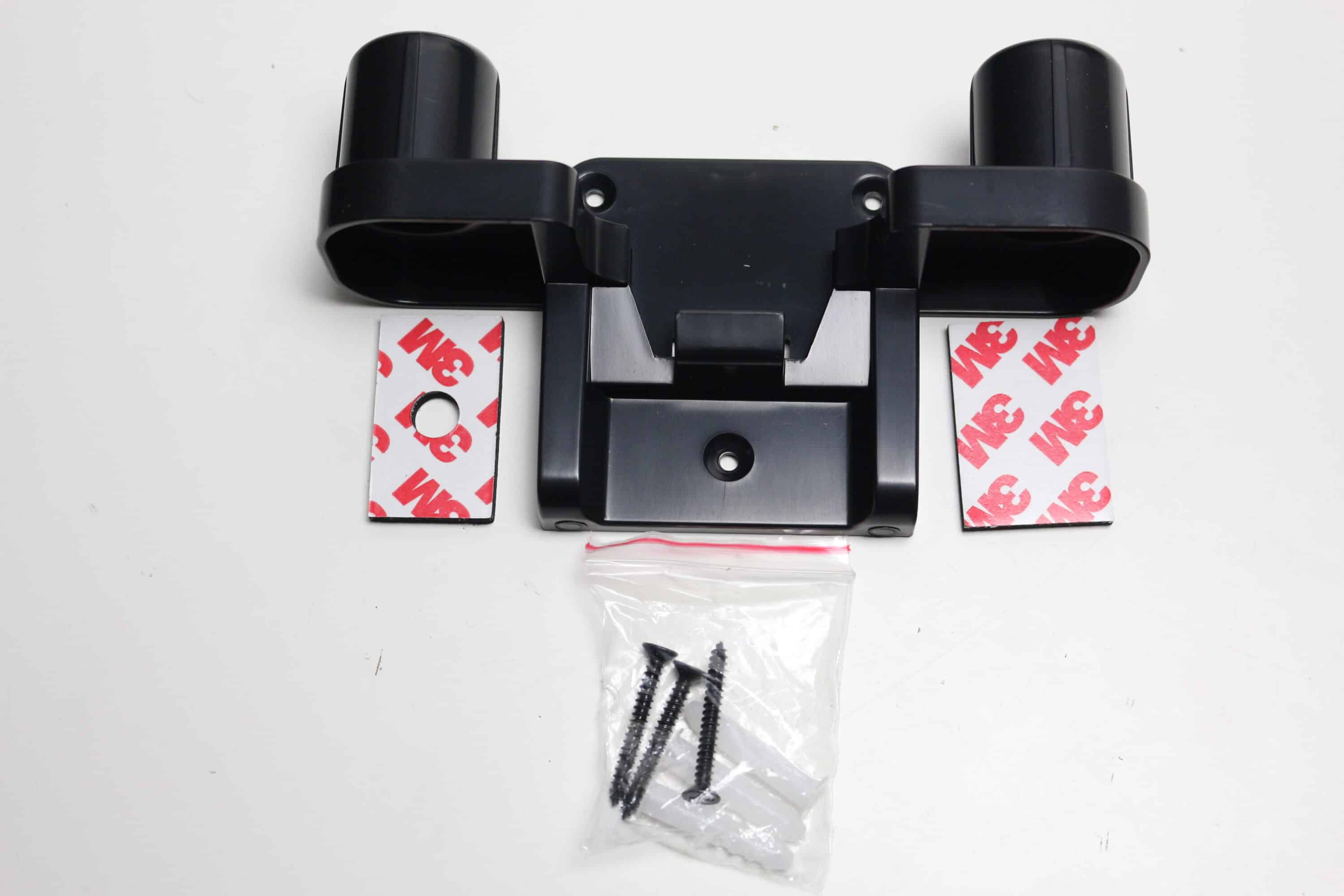 Insgesamt führt die Montageart aber zu etwas Spiel zwischen den Komponenten. Dadurch wirkt das Konstrukt stellenweise etwas wackelig. Da der AENO SC1 zudem nicht alleine stehen kann, muss der Staubsauger irgendwie anders befestigt werden. Dazu legt AENO dem SC1 eine wenig spektakuläre Wandhalterung aus Kunststoff inklusive Montagematerial (Schrauben, Dübel) und zwei Klebestreifen bei. Außerdem verfügt der Halterahmen über zwei Montagepunkte für die mitgelieferten Staubsaugeraufsätze.