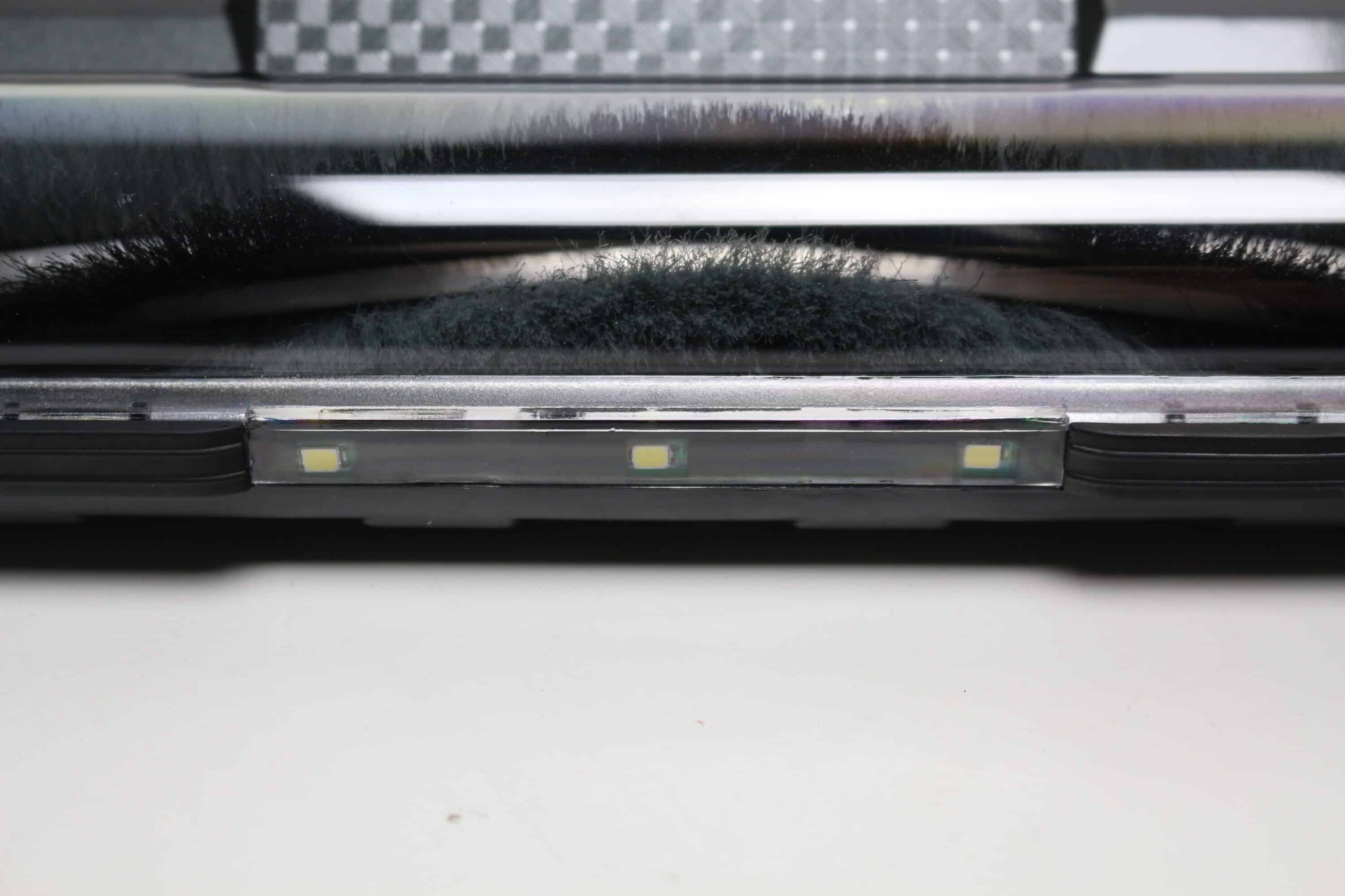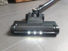 Weiterhin verfügt der Bürstenkopf in der Front über drei LEDs, die beim aktivieren des Staubsaugers automatisch an- bzw. wieder ausgehen. Zweck der LEDs soll eine bessere Erkennung von Staub in dunklen Bereichen wie zum Beispiel unter dem Sofa sein. Die Leuchtkraft der LEDs ist in Ordnung. Ein weiteres Feature ist das flexible Gelenk am Bürstenkopf, durch welches auch schwerer zugängliche Stellen einfacher erreicht werden können.