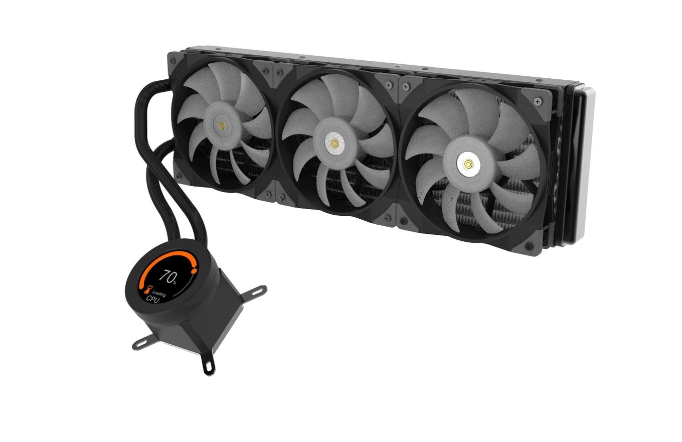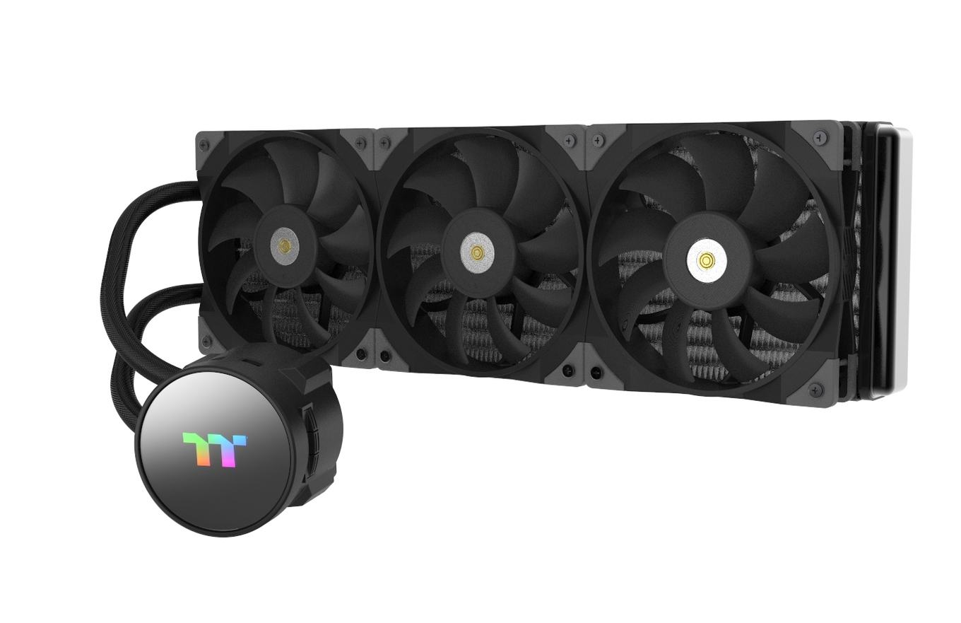 Die beiden neuen AiO-Kühlungen von Thermaltake nutzen nun die neuen Toughfan-12-Lüfter. Diese Lüfter wurden vom Hersteller als robuste High-Speed-Lüfter entwickelt. Bei diesen liegt die maximale Drehzahl bei 2.500 U/min. Eine Beleuchtung haben die Lüfter dabei nicht. Dafür nutzt Thermaltake zusätzlich überarbeitete Radiatoren, welche eine größere Kühloberfläche haben. Die Thermaltake Toughliquid Ultra kommt mit einem 2,1-Zoll-Display raus, womit die Überwachung der Komponenten, die Darstellung von GIFs und die Anzeige von Effekten ermöglicht wird. Für die Einrichtung der Kühlung wird die neue Software TT RGB Plus 2.0 verwendet. Die Ultra-Serie wird dabei zunächst Modelle mit einem 240-mm- oder 360-mm-Radiator haben. Will man lieber einen beleuchteten Pumpendeckel, anstatt eines Displays, bietet sich das Thermaltake Toughliquid ARGB Sync an. Anstelle des Displays kommen hier sechs adressierbare RGB-LEDs zum Einsatz. Diese beleuchten das Thermaltake-Logo. Dabei kann hier die Abdeckung um 360 Grad gedreht werden und sorgt so immer für eine saubere Ausrichtung. Für die Synchronisierung mit einem geeigneten Mainboard sorgt der 5V+-A-RGB-Anschluss. Bei der Thermaltake Toughliquid ARGB Sync-Serie stehen Radiatoren von 240 mm, über 280 mm und 360 mm zur Auswahl. Je nach Modell sorgen bei den Kühlungen zwei oder drei Lüfter für den Luftaustausch. Dabei wird auch bei den Modellen mit 120-mm-Lüfter Toughfan 12 verwendet, jedoch ist hier die maximale Drehzahl auf 2.000 U/min begrenzt worden.