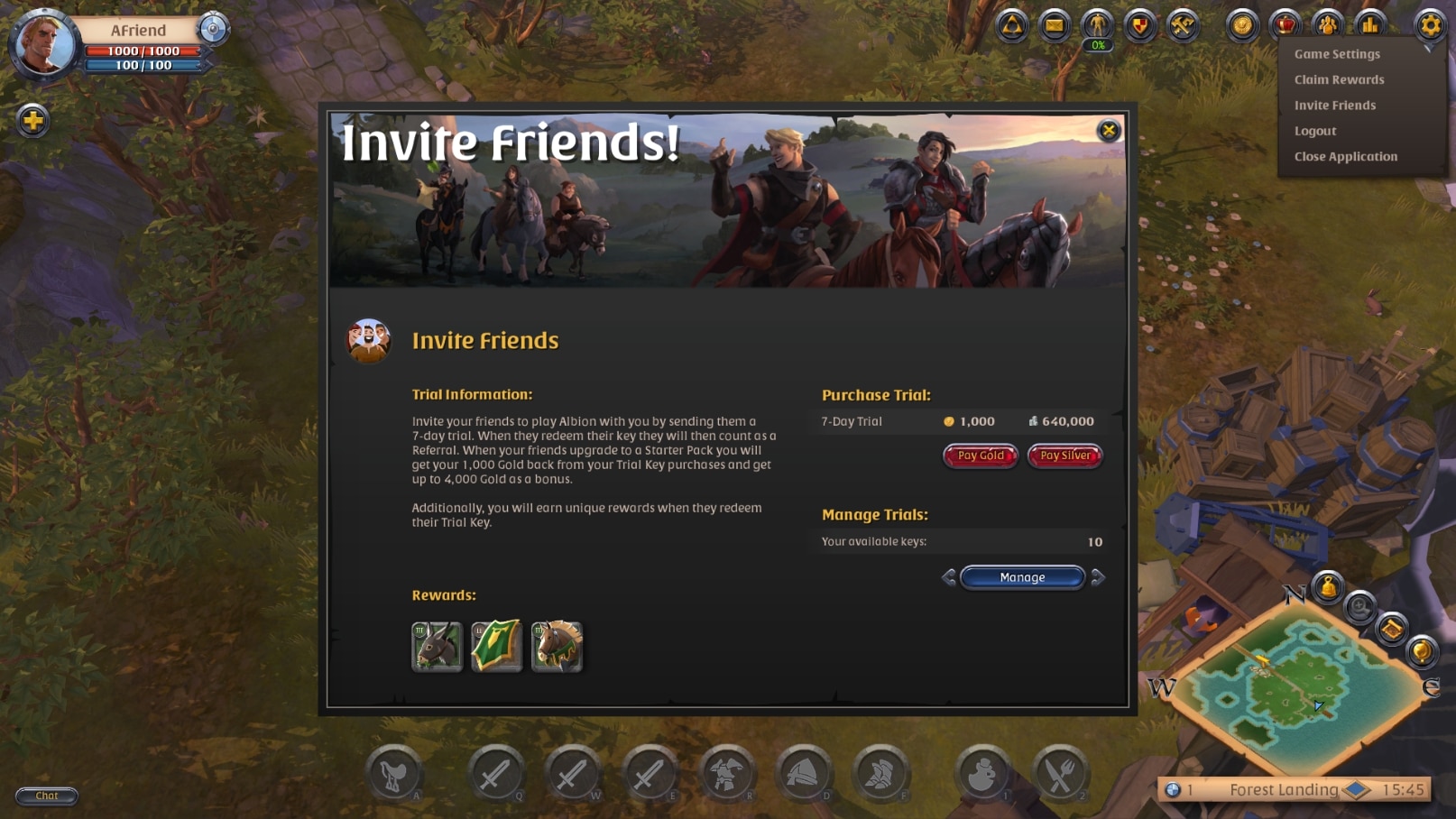 Dieses ungewöhnliche Modell nennt sich „Invite a Friend“-Programm. Für 1.000 Goldmünzen kannst du einen sogenannten „Trial Key“ erwerben und an einen Freund weitergeben. Dieser erhält dadurch die Möglichkeit, eine Woche lang kostenlos zu spielen.