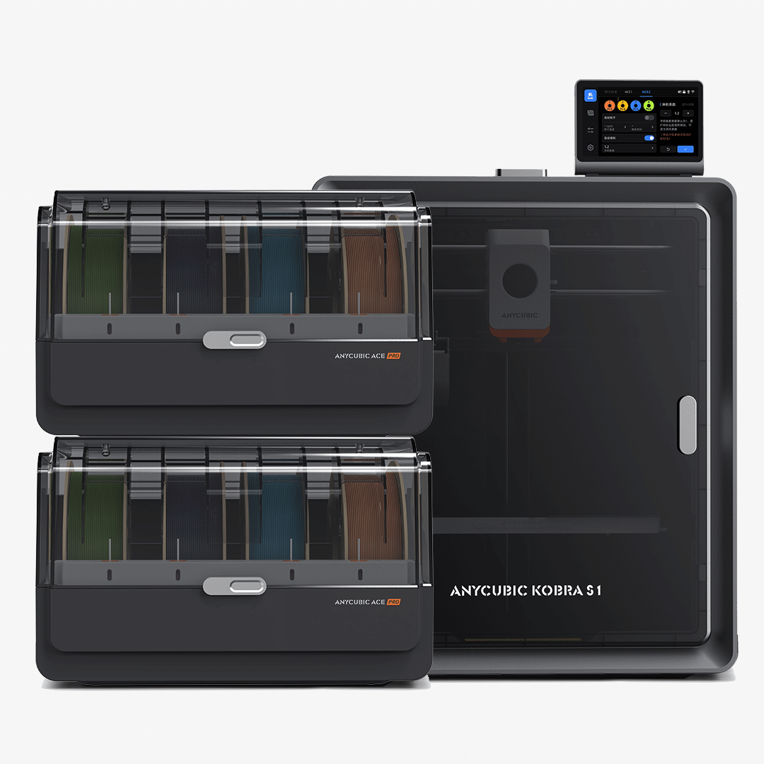 Ein herausragendes Merkmal des Kobra S1 Combo ist seine Fähigkeit zum Mehrfarbendruck. Durch den Einsatz von bis zu zwei ACE Pro-Einheiten können bis zu acht verschiedene Filamente gleichzeitig verwendet werden. Die ACE Pro-Einheiten dienen nicht nur als Filamentlager, sondern trocknen die Filamente auch während des Druckvorgangs. Das soll die Druckqualität weiter verbessern.