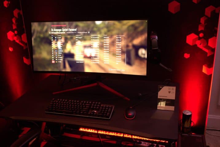 Das Design des Geräts ist indes durch seine enorme Größe geprägt. Mit einer Bildschirmdiagonale von 35 Zoll ist es schier riesig. Breite Ränder werden hingegen vergeblich gesucht. So wirkt der Bildschirm trotz seiner Größe schlank und modern. Farblich ist das Design durch einen Kontrast von Rot und Schwarz geprägt. Rückseitig findet sich zudem ein individualisierbarer RGB-Ring, der über „Light FX“ aktiviert und gesteuert werden kann. AOC spricht von einem eleganten und kompakten Design – in jedem Falle entspricht es dem Zeitgeist.