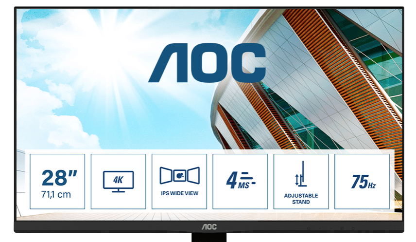 Sollte man auf eine hohe 4K-Auflösung nicht verzichten wollen, dafür aber bereits mit 28 Zoll zufrieden sein, ist vielleicht der U28P2A die passende Lösung. Hier punktet AOC wieder mit einem hübschen rahmenlosen Design. Trotz hoher Auflösung wird auch hier ein IPS-Panel verbaut, das sRGB zu 120 Prozent und Adobe RGB zu 89 Prozent abdeckt.