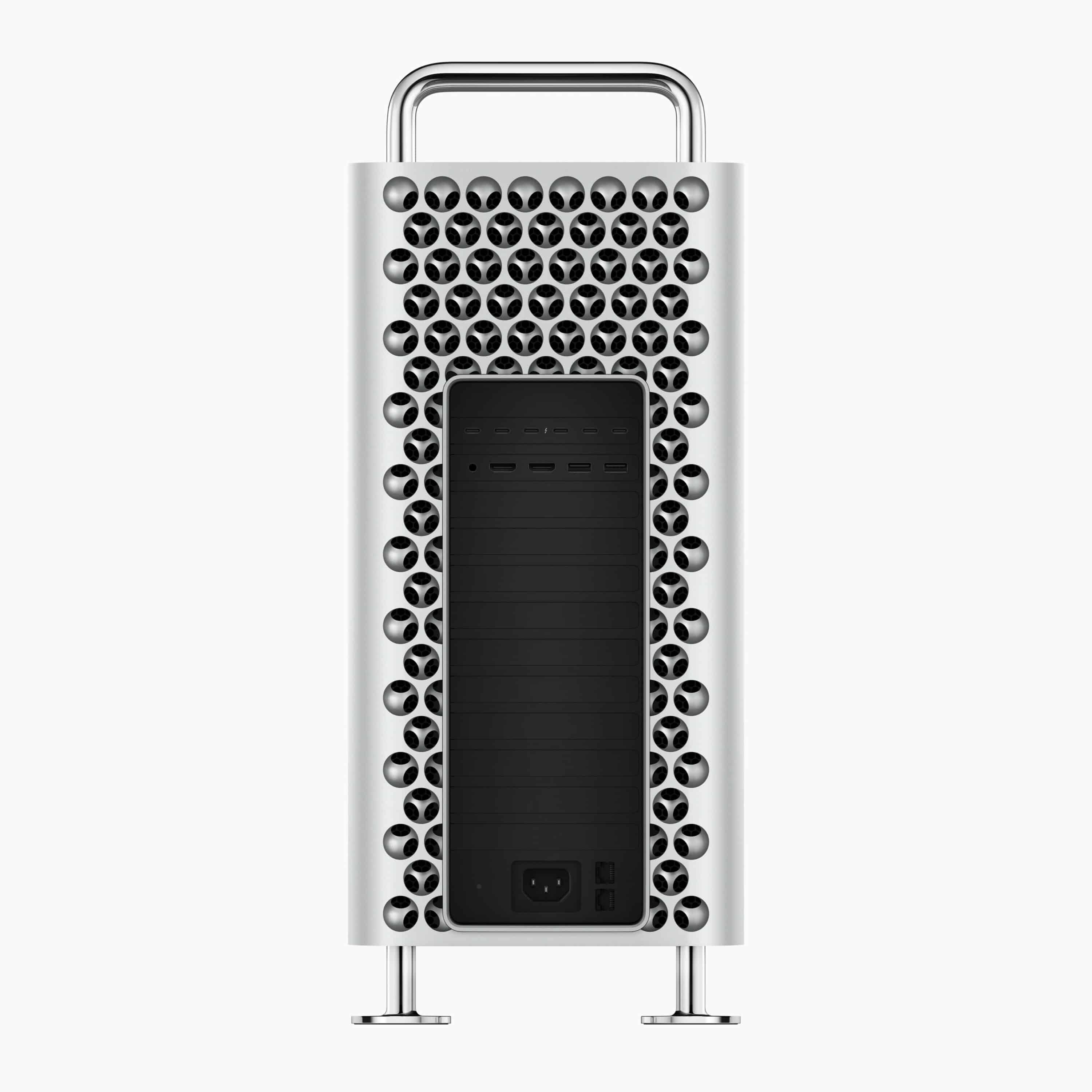 Die Rückseite des Systems bietet standardmäßig sechs Thunderbolt-Ports und zwei HDMI-Ports. Darüber hinaus gibt es zwei USB-A-Ports und zwei 10-GBit-Ethernet-Anschlüsse. Diese Vielfalt an Anschlüssen macht den Mac Pro zum vielseitigsten Mac, der mit Apple Silicon ausgeliefert wird, und könnte daher für spezielle Nutzergruppen attraktiv sein, die auf MacOS nicht verzichten möchten.