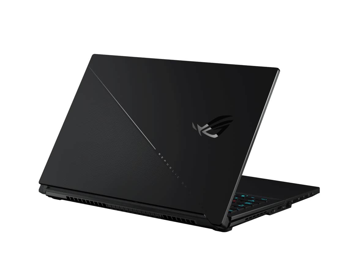 Nicht minder performant fällt das ASUS ROG Zephyrus M16 Gaming-Notebook aus. Es setzt auf einen besonders schmalen Displayrahmen und bietet ein Screen‑to‑Body‑Verhältnis von 94 Prozent. Das WQHD-Display mit 165 Hz Bildwiederholrate und 3 ms Reaktionszeit hat ein Seitenverhältnis von 16:10 und ist mit 500 Nits zudem besonders hell.