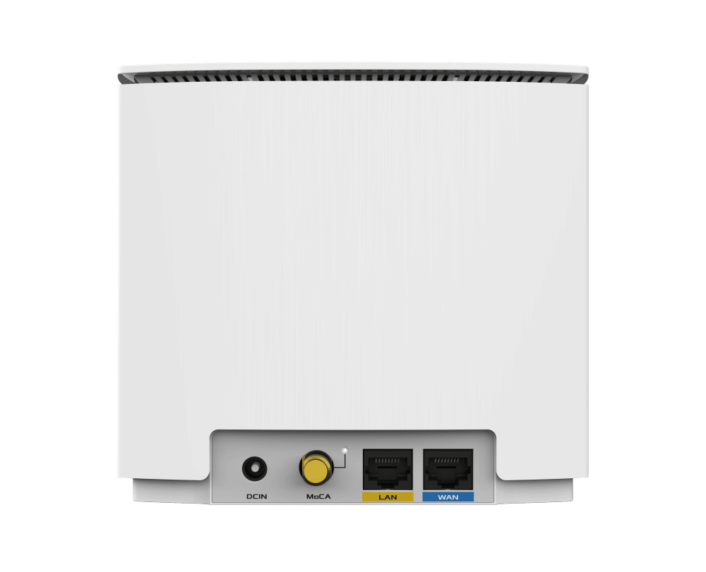 Das weltweit erste MoCA-Mesh-System bietet eine Kombination aus physischen Verbindungen, drahtlosen Verbindungen und 160-MHz-Funkkanälen, um die Netzwerkgeschwindigkeit auf bis zu 5500 Mbit/s zu erhöhen – 2500 Mbit/s über MoCA, 2402 Mbit/s auf dem 5-GHz-Kanal und 574 Mbit/s auf dem 2,4-GHz-Kanal.