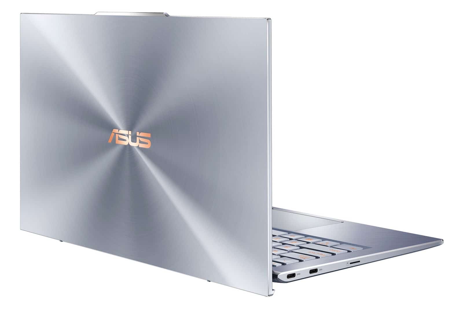 Das neue ZenBook verfügt über zwei USB-3.1-Anschlüsse, einen USB-3.1-Anschluss der zweiten Generation sowie über einen microSD-Kartenleser und einen 3,5-mm-Klinkenanschluss. Alle USB-Anschlüsse sind mit USB-C-Stecker versehen. Geladen wird das Gerät über die USB-Anschlüsse.