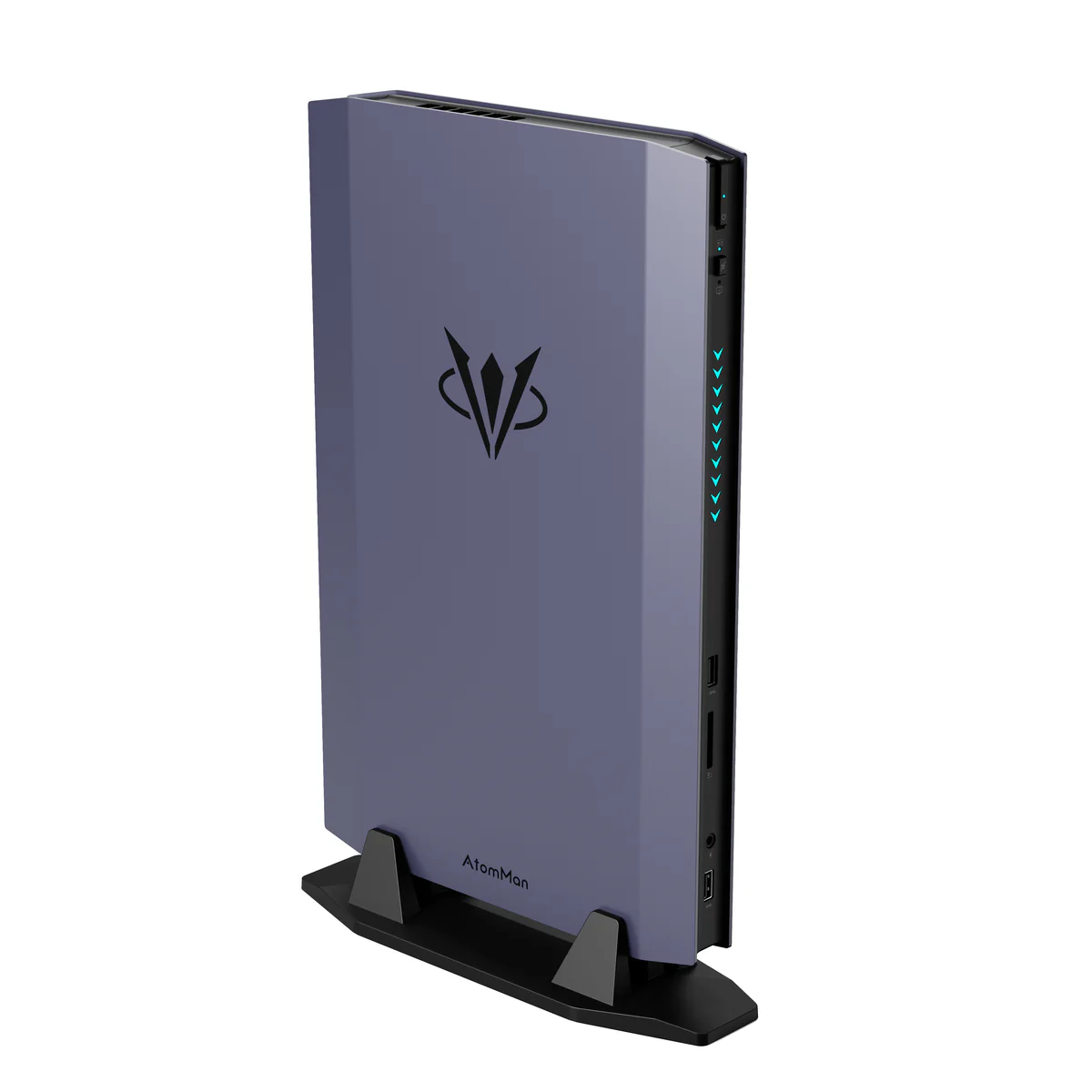 Der kompakte Formfaktor des AtomMan G7 Ti ermöglicht eine einfache Integration in jeden Arbeitsplatz oder jedes Gaming-Setup. Trotz seiner geringen Größe ist der Mini-PC mit einer Vielzahl an Anschlüssen ausgestattet, darunter USB 4, HDMI 2.1, DisplayPort und ein 2,5-GbE-LAN-Port, die eine vielseitige Konnektivität gewährleisten.