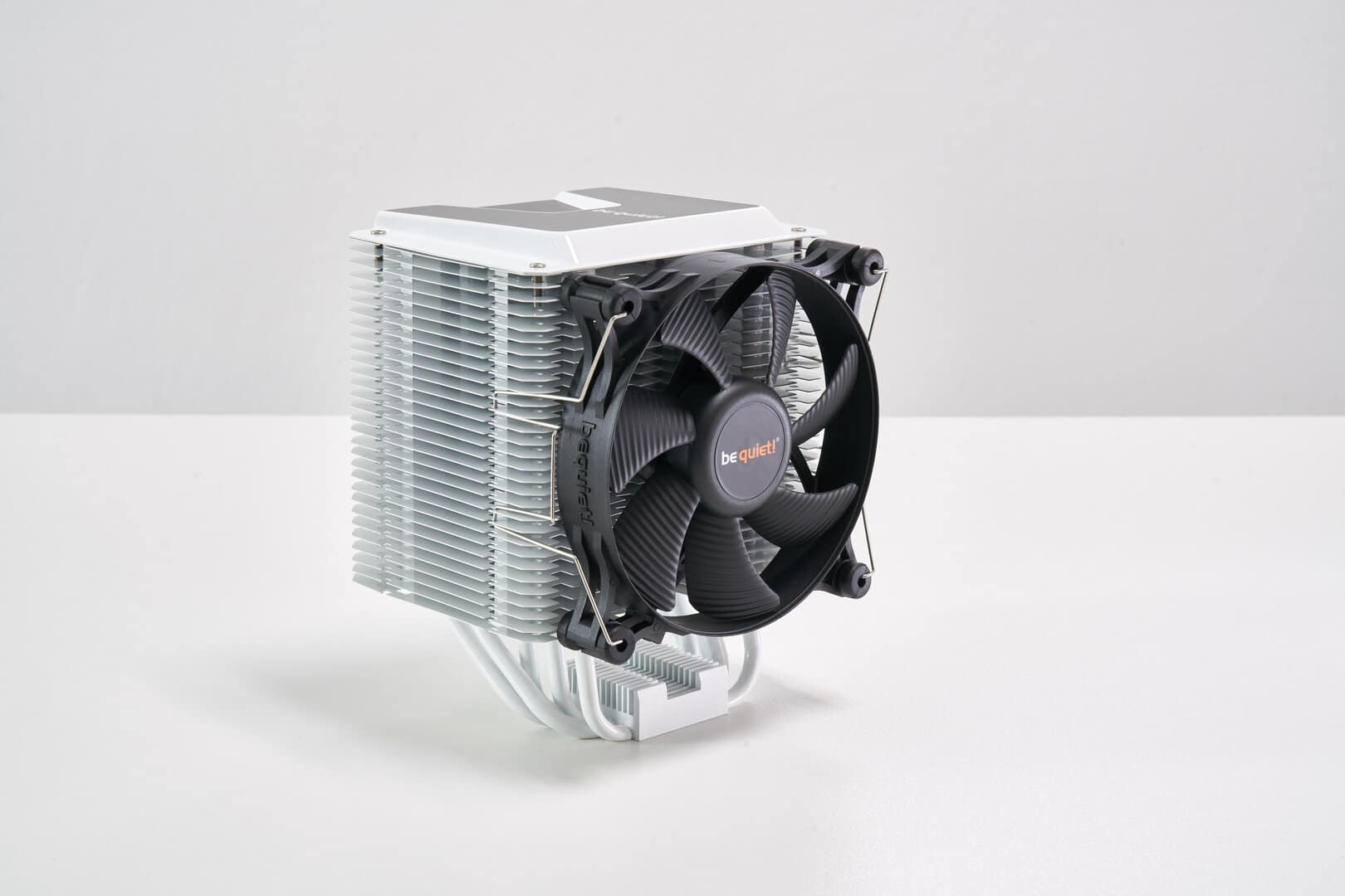 Gegen einen kleinen Aufpreis gibt es den Shadow Rock 3 nun auch in der Farbe weiß. Im Oktober möchte Hersteller be quiet! die optisch modifizierte Version auf den Markt bringen. Farbliche Änderungen gibt es nicht nur bei der Außenhülle des Kühlers. Darüber hinaus hat der Hersteller die Heatpipes und Lamellen des Shadow Rock 3 mit weißer Farbe beschichtet. Doch der Kühler hat auch nach wie vor schwarze Elemente. So sorgen die schwarzen Elemente auf der Top-Plate für einen ansehnlichen Kontrast.