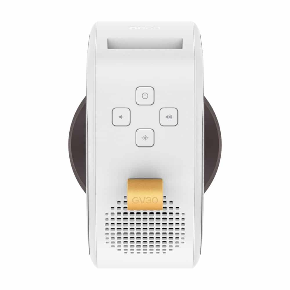 Mit einer Größe von 120,0 mm x 195,8 mm x 185,0 mm (B x H x T) und einem Gewicht von nur 1,6 kg markiert der BenQ GV30 Mini-Beamer einen hervorragenden Begleiter für den Außeneinsatz, der dank integriertem Akku zudem ohne externe Stromversorgung betrieben werden kann. Die Akkulaufzeit liegt laut Angabe des Herstellers bei rund zweieinhalb Stunden.