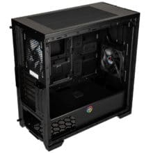 Ab Werk ist hier ein 120-mm-Lüfter mit RGB-Beleuchtung installiert. Laut Datenblatt handelt es sich bei diesem Lüfter um einen aus der Spectre-Serie. In der Front ist ab Werk ebenfalls ein 120-mm-Lüfter installiert. Von diesem ist die Produktreihe unbekannt. Auch besitzt dieser keine RGB-Beleuchtung. Insgesamt können bis zu sechs 120-mm-Lüfter eingebaut werden.