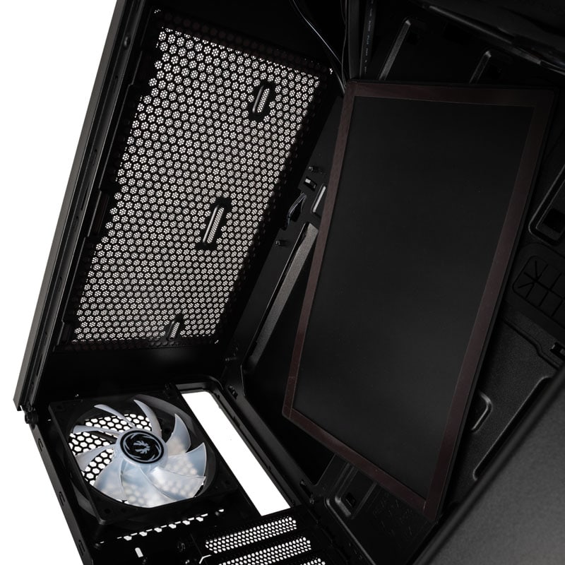 Die Hauptkammer des neuen Saber-Modells bietet ausreichenden Stauraum für Komponenten. Hauptplatinen bis zum E-ATX-Formfaktor können dadurch installiert werden. Es können CPU-Kühler mit einer maximalen Höhe von bis zu 17,8 cm installiert werden. Bei der Grafikkarte liegt die maximal verbaubare Länge bei 40 cm. Grafikkarten können auch bei Bedarf vertikal eingebaut werden. Radiatoren mit bis zu 360 mm Länge können ebenso untergebracht werden. In der Front können die Radiatoren bis zu 280 bzw 360 mm groß sein. Im Deckel kann ein 240-mm-Radiator installiert werden. Wie von Bitfenix gewohnt, kann an der Rückseite ein 120-mm-Radiator zusätzlich installiert werden.