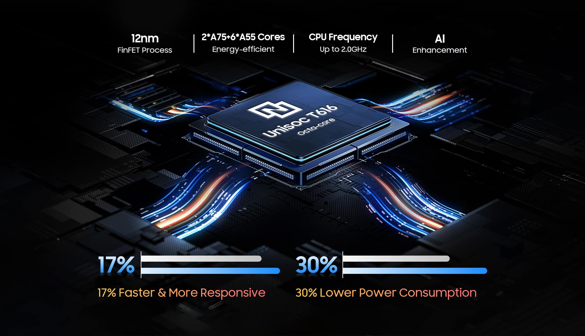 Das Blackview Tab 16 kommt mit einem Unisoc T616 Octa-Core-Prozessor daher, der im Gegensatz zu seinem Vorgänger um 17 Prozent schneller arbeiten und dabei 30 Prozent weniger Energie verbrauchen soll. Damit liefert er noch mehr Leistung für Anwendungen, Spiele und vieles mehr.