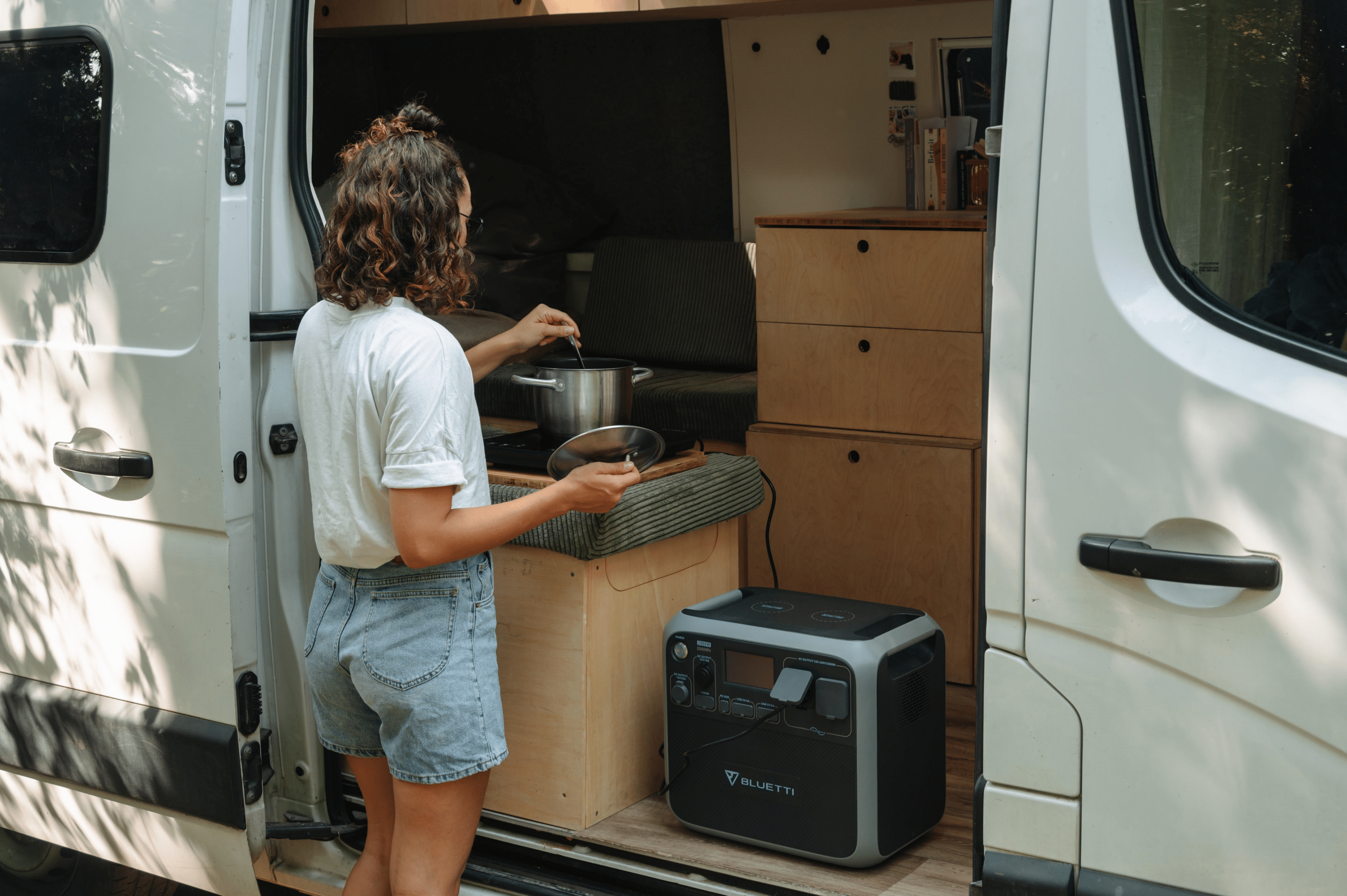 Die Powerstation AC200P wurde pünktlich zur Reisesaison in Europa vorgestellt – womit bereits deutlich ist, für welchen Anwendungsbereich sie konzipiert wurde. Gedacht ist sie als Begleiterin für unterwegs. Hier stellt sie mit ihrem Speicher von 2.000 Wh und einer Leistung von 2.000 Watt genügend Energie zur Verfügung, um gängige Alltagsgeräte mehrfach aufladen zu können. So geht der Handyakku auf Reisen nie zur Neige und weitere wichtige Geräte wie Laptop, Kochplatten und Kühlbox können bequem betrieben werden. Als Verwendungszwecke gibt Bluetti unter anderem Camping- und Wanderausflüge an.