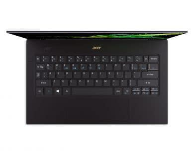 Dank der stromsparenden und zugleich leistungsstarken Komponenten soll beim Acer Swift 7 eine Akkuladung für einen ganzen Arbeitstag ausreichen. Acer verbaut dafür den Intel Core i7-8500Y mit maximal 16 GByte Arbeitsspeicher. Die per PCIe angebundene SSD bietet maximal 512 GByte Kapazität. Eine dedizierte Grafikkarte gibt es aufgrund des kompakten Gehäuses nicht, dies wird die Zielgruppe des Notebooks, das sich eher an professionelle Anwender und das Lifestyle-Segment und nicht an den typischen Gamer richtet, jedoch kaum stören.