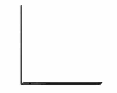 Das 14-Zoll-IPS-Panel bietet eine Full-HD-Auflösung (1.920 x 1.080 Pixel). Der sRGB Farbraum wird zu 100 Prozent abgedeckt, beim NTSC-Farbraum sind es immerhin 72 Prozent. Auch die Helligkeit von 300 Nits ist für ein kompaktes Notebook ein sehr guter Wert. Geschützt wird das Display vor Rissen und Kratzern mit Corning Gorilla Glass 6.