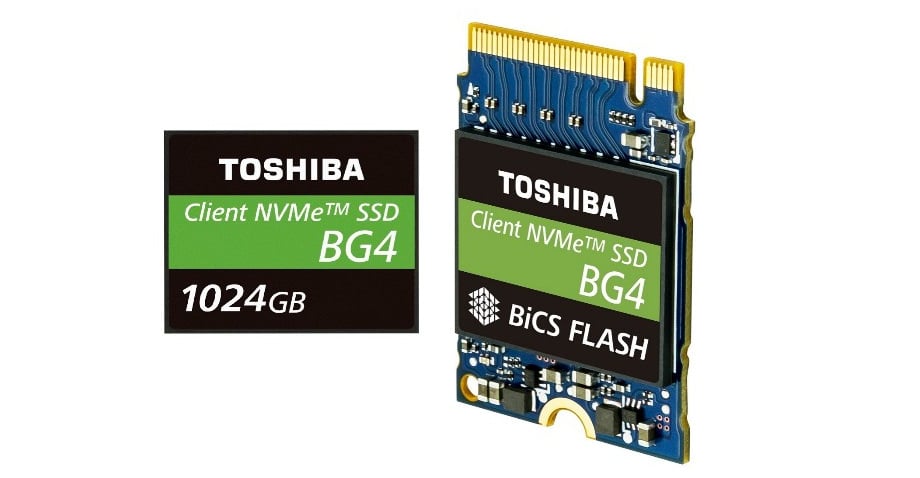 Angeboten wird die SSD sowohl als Steckmodul im M.2-2230-Format oder als festverlötete BGA-Version. Um den kleinen Formfaktor bei gleichzeitig hoher Kapazität umzusetzen, hat Toshiba im Gehäuse den Controller und die Flash-Speicherchips übereinander angeordnet. Angeboten werden zwischen 128 GByte und 1 TB Kapazität.