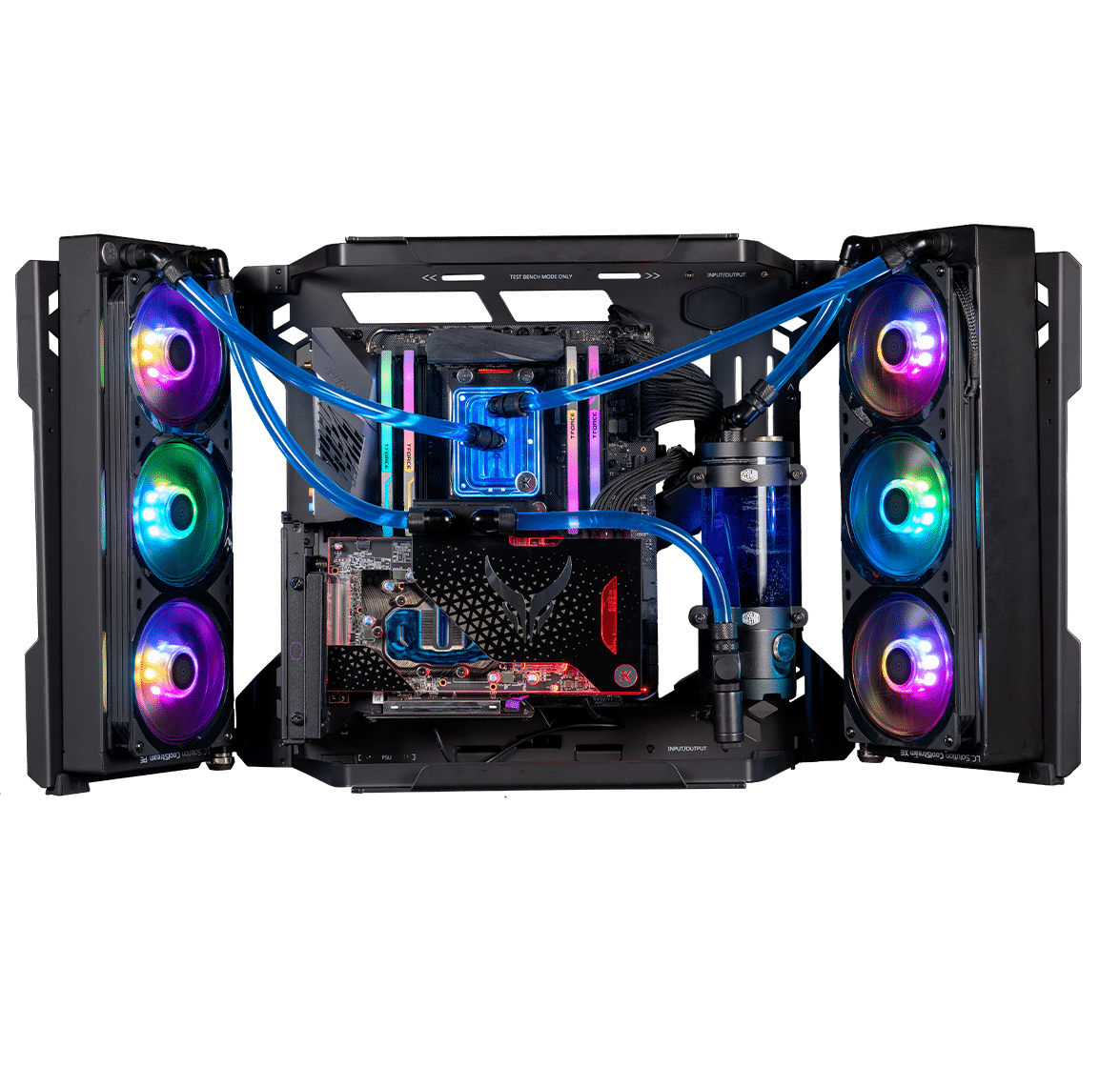 Dieses Maximum an Stabilität soll jedoch keineswegs auf Kosten der Beweglichkeit gehen. Dies sorgt dafür, dass man aus einem Case viele verschiedene PC-Setups zaubern können soll. Cooler Master betont dabei vor allem die Möglichkeit, individuelle Wasserkühlungs-Setups aufbauen zu können.