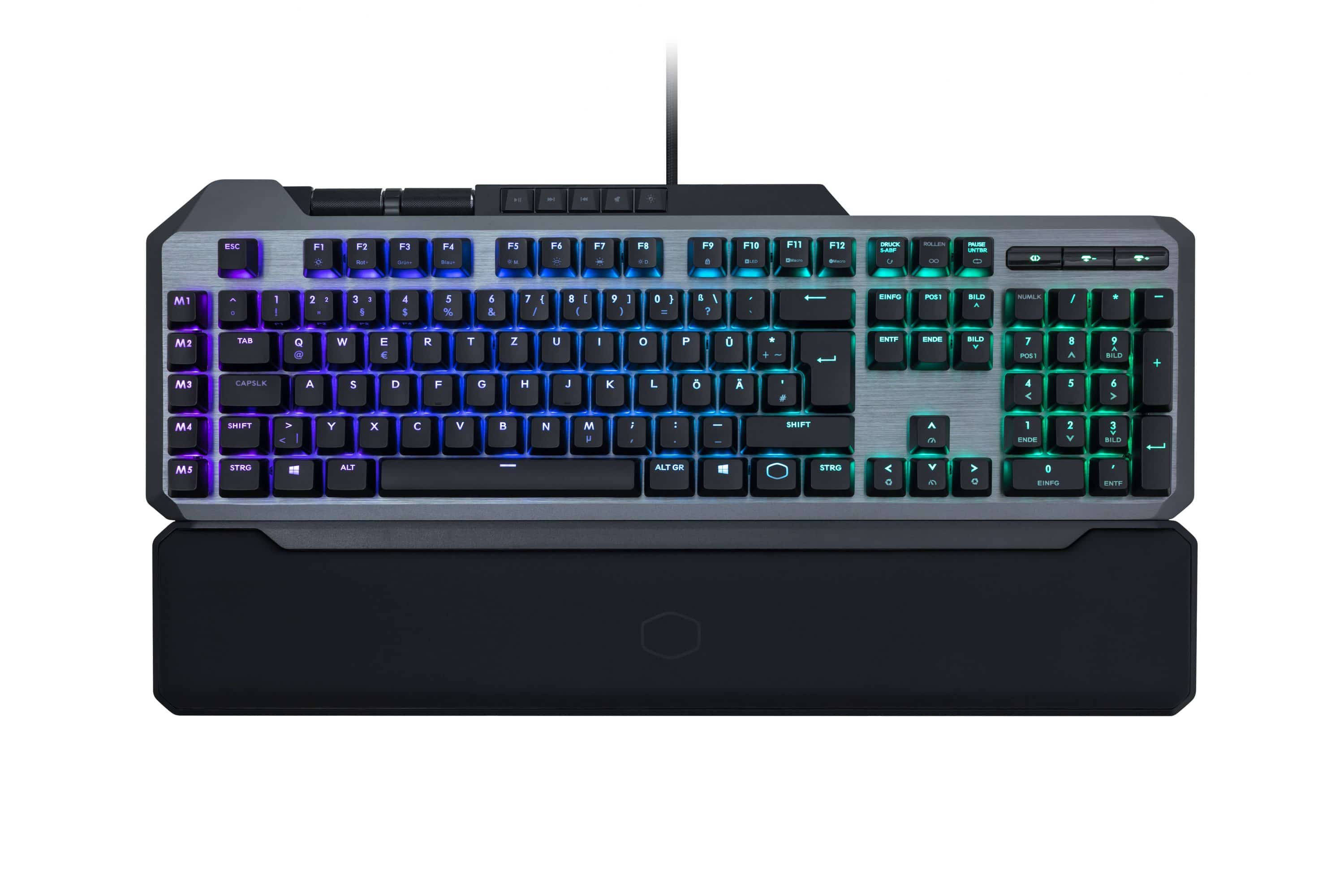 Abgesehen von dieser in jedem Falle hervorzuhebenden Ungewöhnlichkeit präsentiert die „MK850“ sich als ganz klassische Gaming-Tastatur. Ausgestattet mit vollständigem Layout inklusive Ziffernblock verfügt die Tastatur auch über Makro- und Multimediatasten sowie über zwei Präzisionsräder, die unter anderem zur Steuerung der Lautstärke eingesetzt werden können.