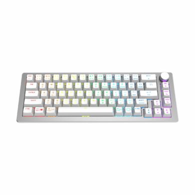 Die MK721 verzichtet auf einen Nummernblock und kommt entsprechend handlich daher. Sie verfügt über ein 68-Tasten-Layout, ist also mit Entfernen- und Bildlauf-Tasten ausgestattet, sodass nicht auf jeglichen Komfort größerer Tastaturen verzichtet werden muss. Hinzu kommt ein programmierbares Wahlrad, das sich in der rechten oberen Ecke der Tastatur befindet.
