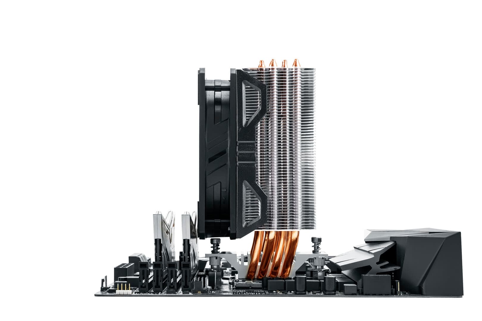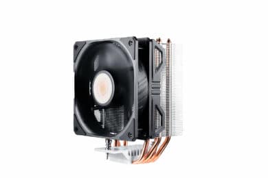 In Sachen Lüfter setzt Cooler Master bei seiner Neuauflage auf ein aktuelles Modell aus dem SickleFlow-Portfolio. Dieses soll Geschwindigkeiten zwischen 600 und 1.800 Umdrehungen pro Minute meistern können. Damit schafft die erneuerte Version ein höhere Maximaldrehzahl als es beim Vorgänger der Fall war. Dabei wird zwar der Luftdurchsatz nicht erweitert, allerdings steigt der statische Druck. Dies ist nicht nur auf die höhere Drehzahl, sondern auch auf die Blattgeometrie zurückzuführen. Nicht nur die Drehzahl des Lüfters ist höher. Stärker soll auch die allgemeine Kühlleistung sein, wenn man den Angaben von Cooler Master Glauben schenken mag. Bei einem Beispielsprozessor wie dem Ryzen R9 3950X soll die Kühlleistung um zehn Prozent steigen.
