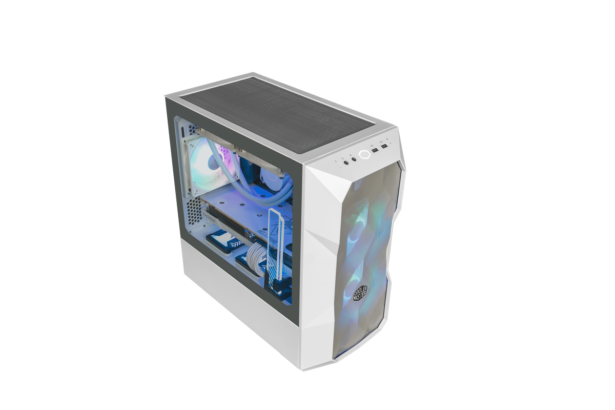 Auch seiner TD-Serie verpasst Cooler Master einen Neuzugang mit schicker Mesh-Front in Form des MasterBox TD300 Mesh. Anders als das HAF 500 richtet sich dieses an User, die nicht allzu viel Platz auf, neben oder unter dem Schreibtisch haben. Möglich macht dies der kompakte mATX-Formfaktor, welcher hier zum Einsatz kommt. Kenner der TD-Serie werden direkt Parallelen zu anderen Gehäusen der Modellreihe erkennen.