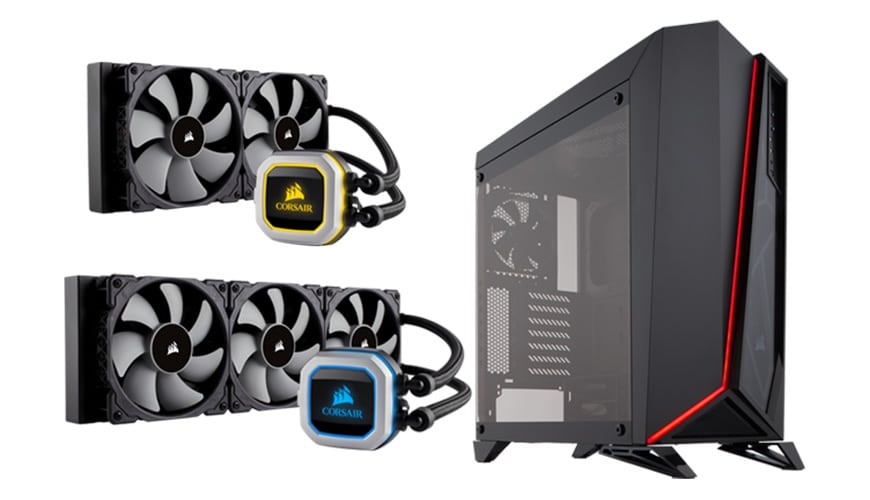 Auch Corsair präsentierte anlässlich der CES zahlreiche neue Produkte. Hierzu zählen unter anderem die CPU-Flüssigkühler H150i PRO und H115i PRO. Diese beiden Produkte sollen die beliebte Hydro Series fortführen. Ausgestattet sind die beiden neuen Produkte mit 360°-RGB-Beleuchtung, die sich auf einer aus Aluminium gefertigten Pumpenkappe befindet. Außerdem sollen sie durch geräuscharme Lüfter, welche der “CORSAIR ML“-Serie entnommen sind und selbst bei voller Geschwindigkeit lediglich eine Lautstärke von 25 dBA erzeugen sollen, sowie durch 360-mm- (H150i PRO) bzw. 280-mm-Radiatoren (H115i PRO) überzeugen.