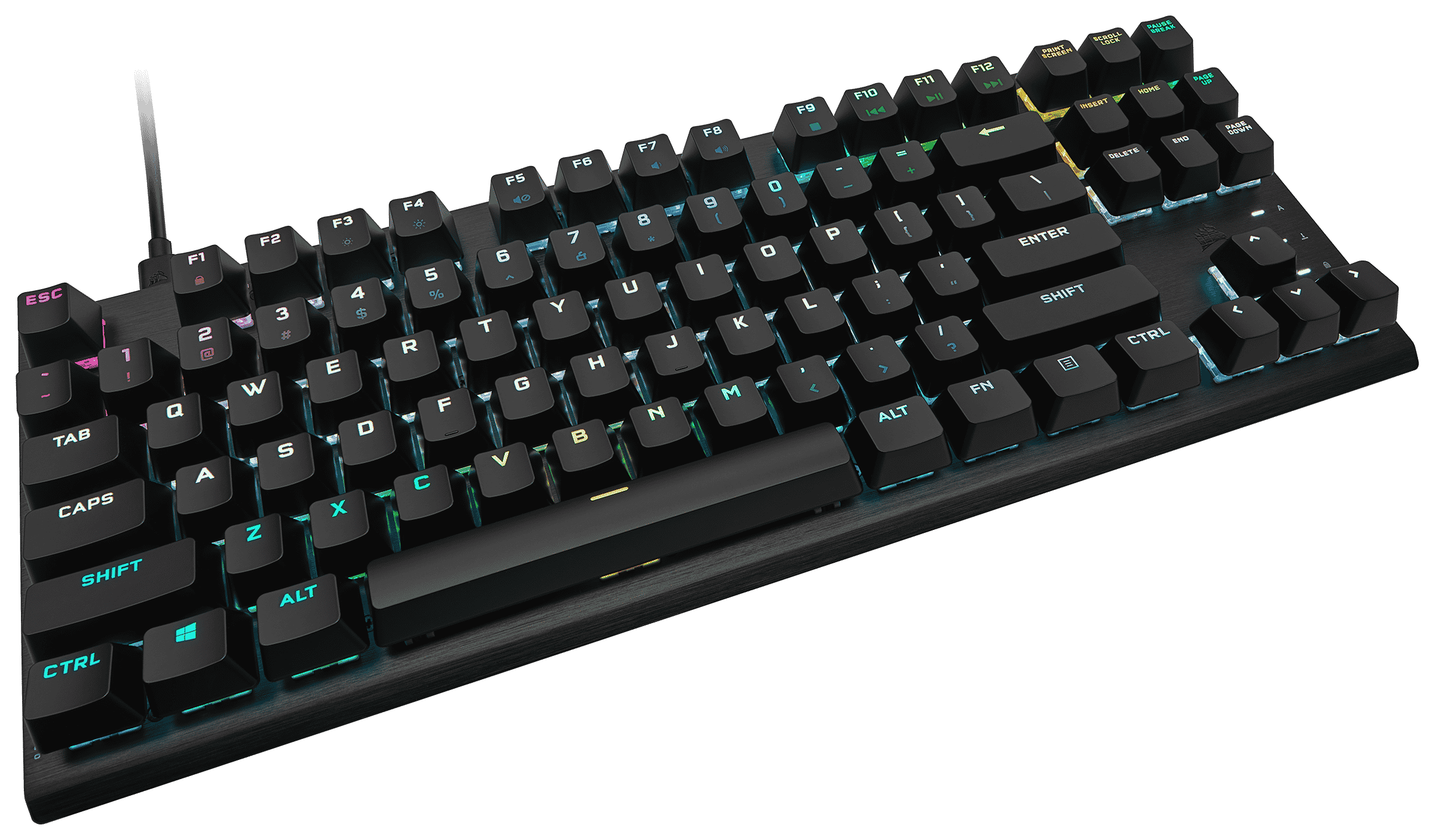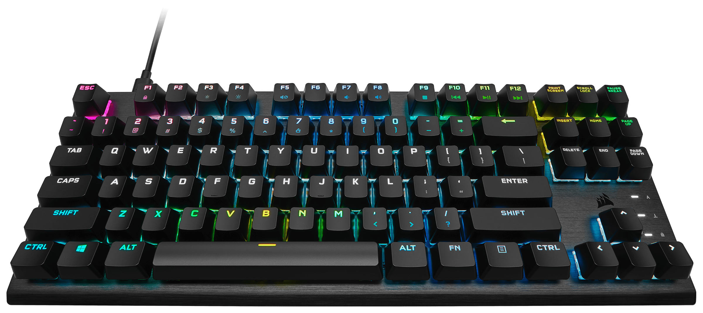Die neue Corsair K60 PRO TKL setzt auf optisch-mechanische Schalter, wie sie beispielsweise auch in der ROCCAT Vulcan TKL Pro (unser Test) zu finden sind. Dabei zeichnen sich die eigens entwickelten OPX-Tastenschalter durch einen geringen Betätigungsabstand von nur 1,0 mm aus, womit sie eine schnelle, lineare Reaktion ermöglichen.